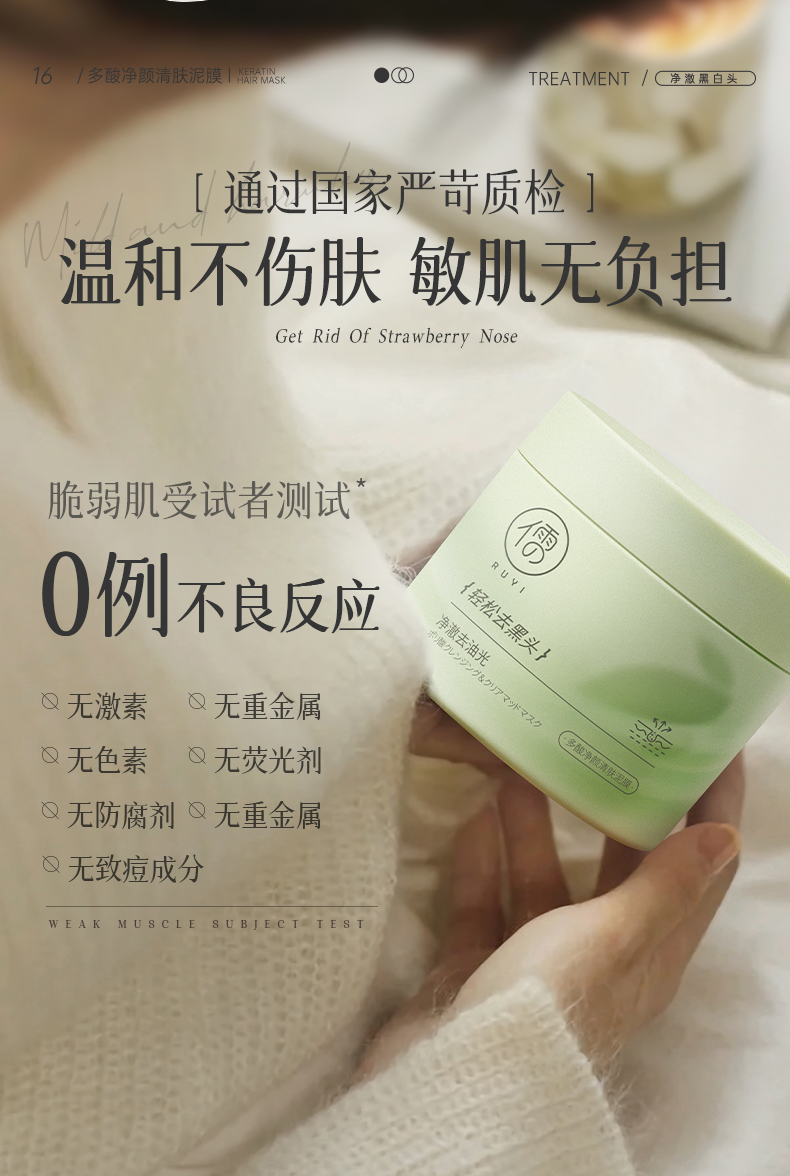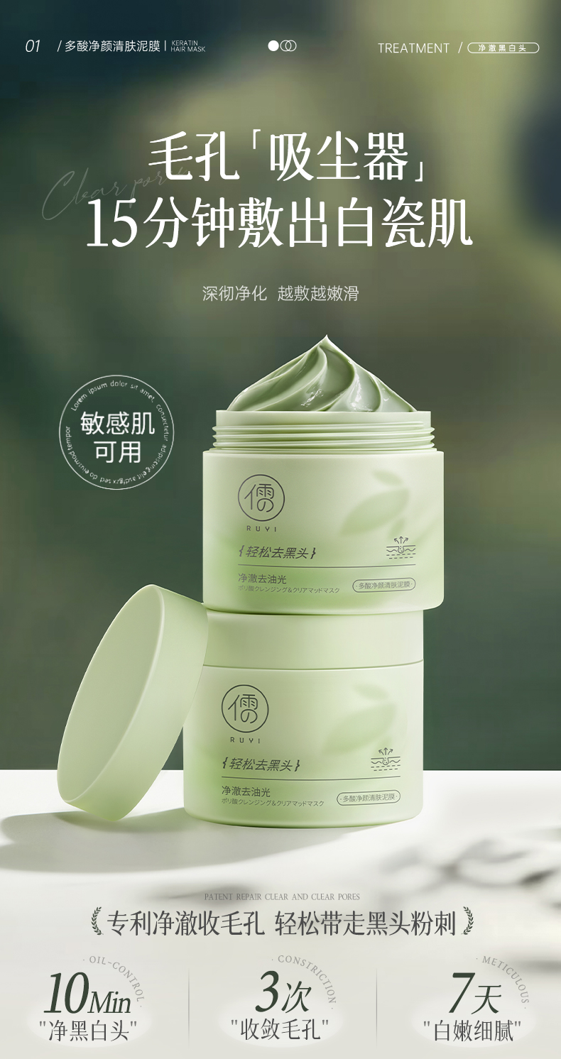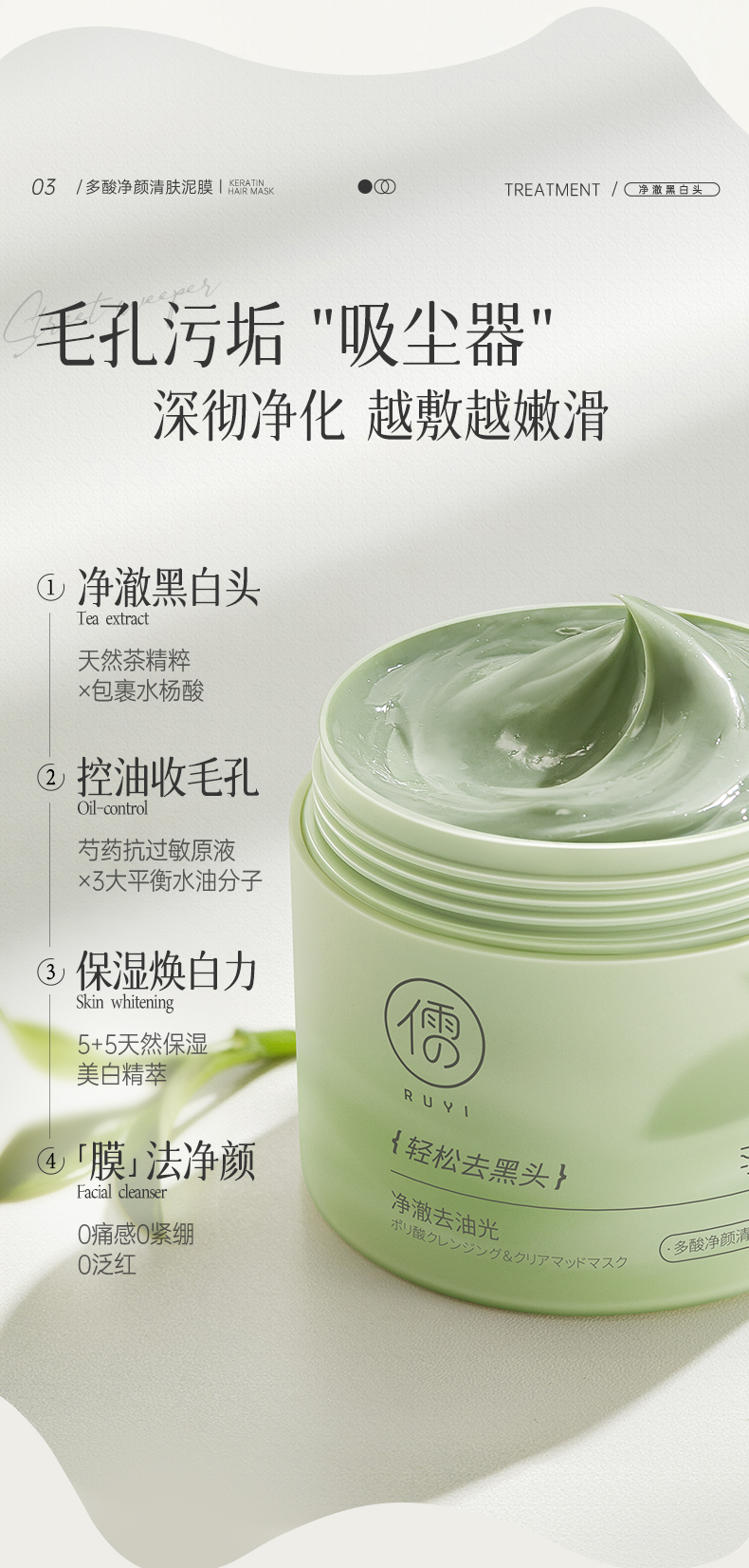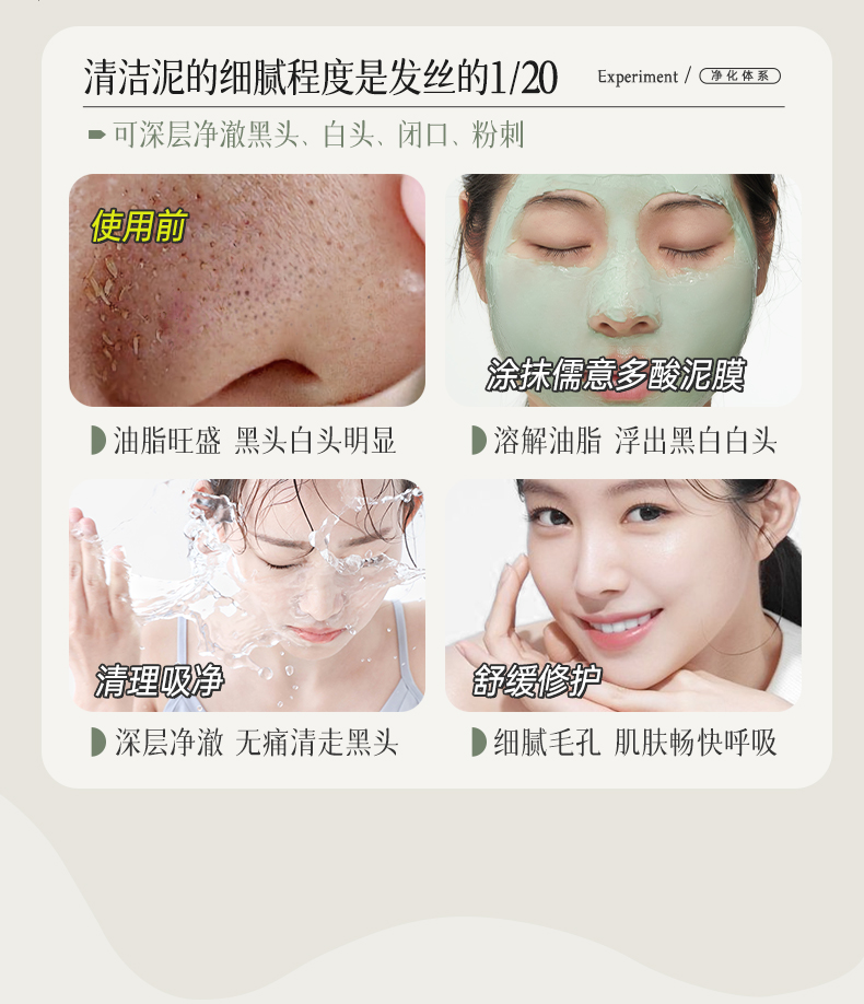儒意多酸清洁泥膜150g 去黑白头闭口粉刺 深层清洁毛孔 涂抹式清洁面膜 |儒意官方商城