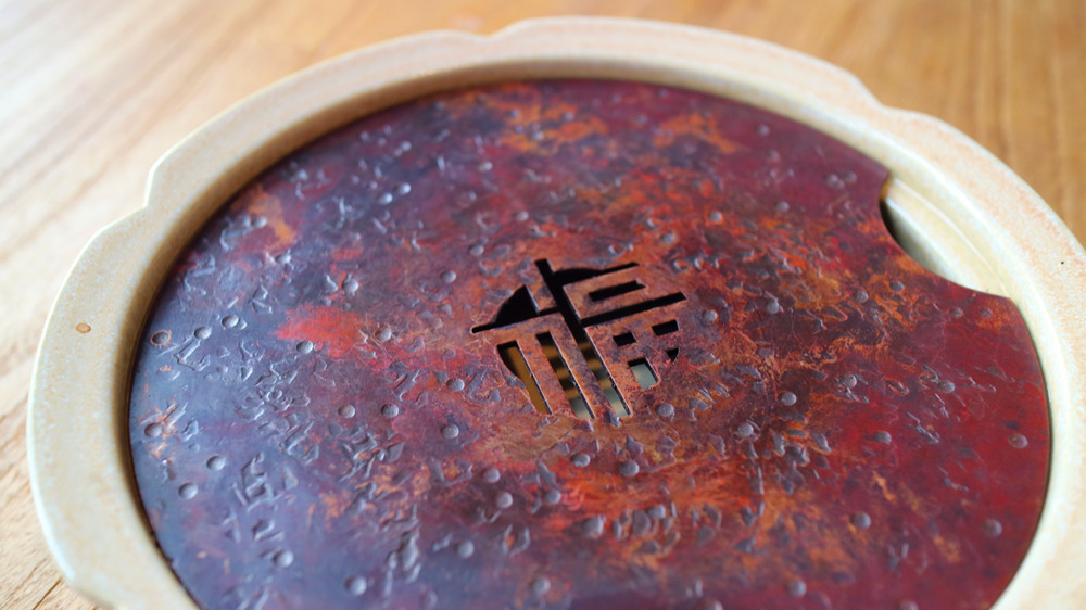 官哥釉开片过程中可能会有深色液体渗出,冲洗或擦干即可,介意勿拍。