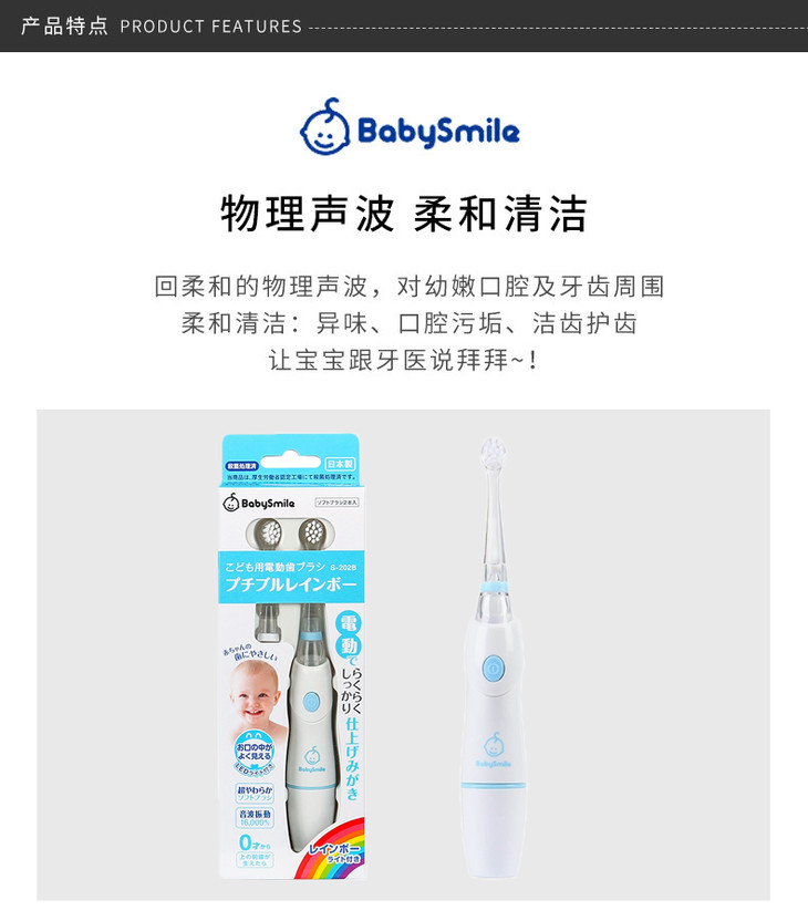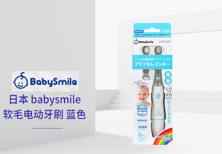 【一般贸易】日本 Baby Smile海之星婴幼儿电动牙刷/蓝色 儿童彩虹灯电动牙刷 宝宝超声波软毛牙刷带刷头S-204B