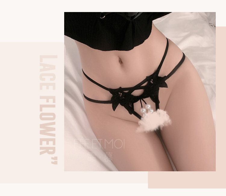霏慕双排大珍珠勒阴情趣丁字裤性感露臀内裤免脱T裤极度诱惑内衣7134 双珠刺激-黑【单条含珠内裤】 均码