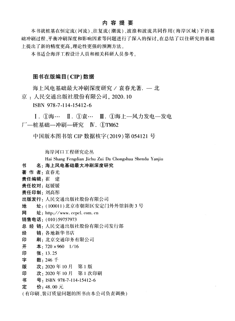 书名:海上风电基础最大冲刷深度研究