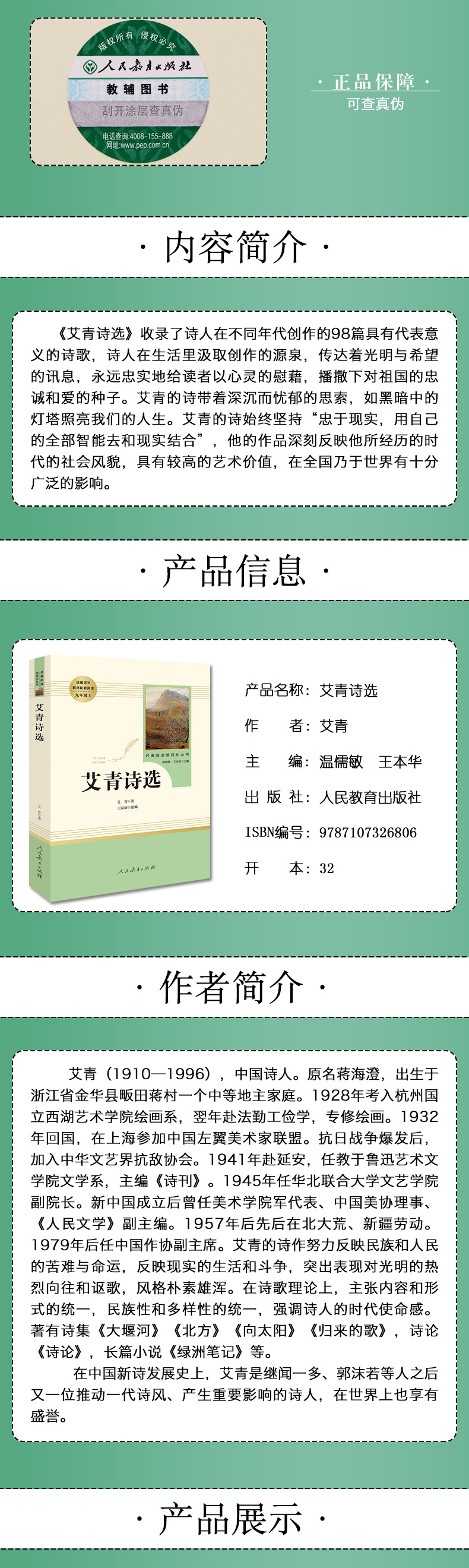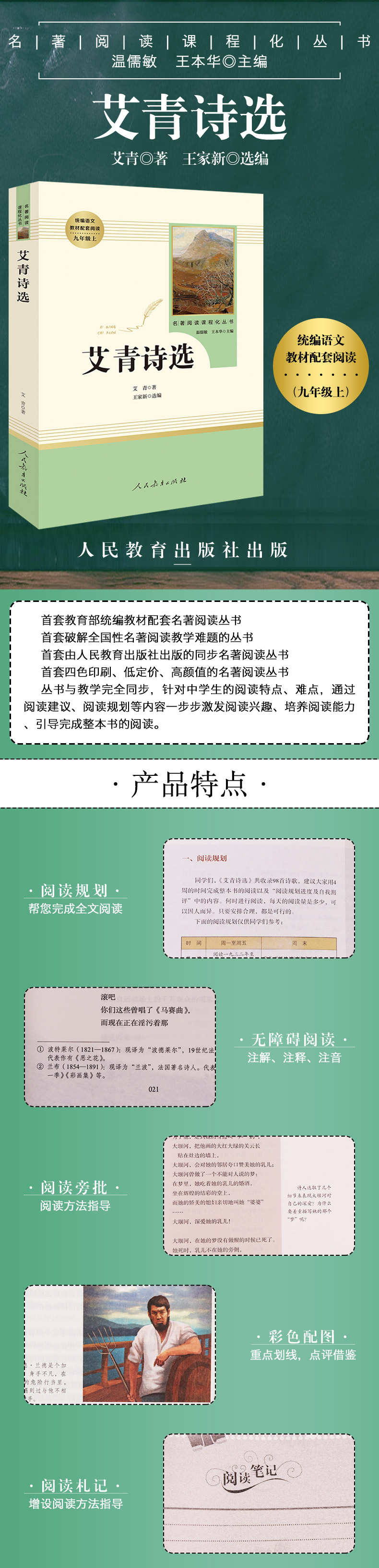 现货 艾青诗选 人民教育出版社完整无删减版 初中生统编语文教材配套阅读九年级上册人教版 部编版名著阅读课程化丛书9年级上
