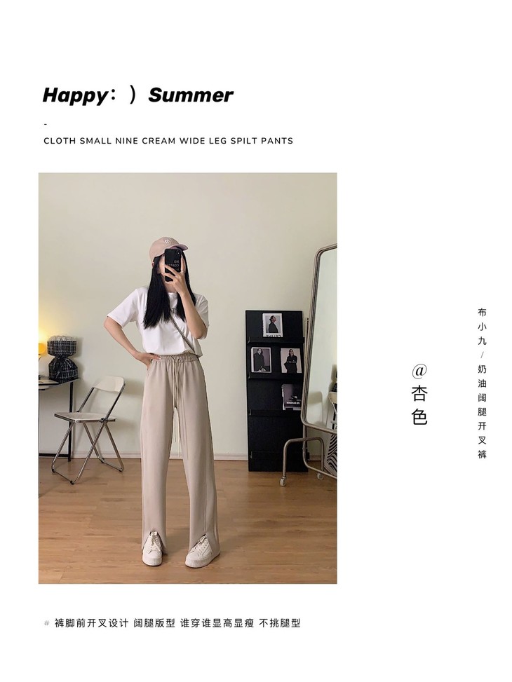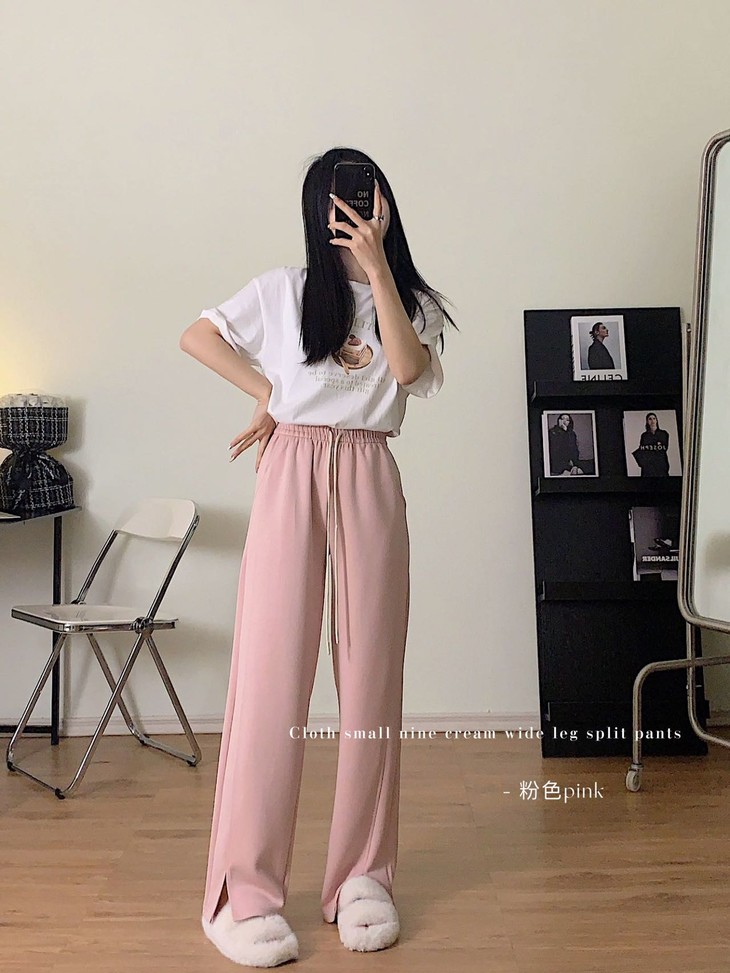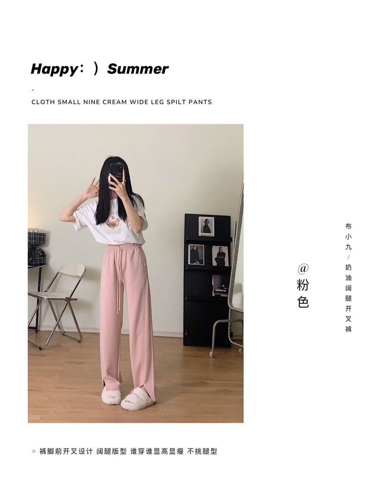 超软“云朵拖地裤” 新款韩版云朵拖地裤 气质通勤 宽松显瘦 休闲开叉长裤高腰显瘦抽绳阔腿裤