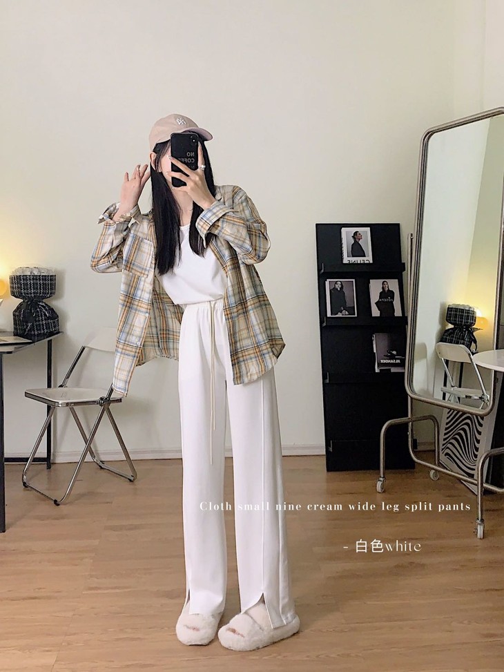 · 高克重空气棉面料天然环保工艺,抗皱免烫,柔软细滑,有垂感,显品质,显瘦,显腿长 满足你对空气棉阔腿裤的所有幻想~