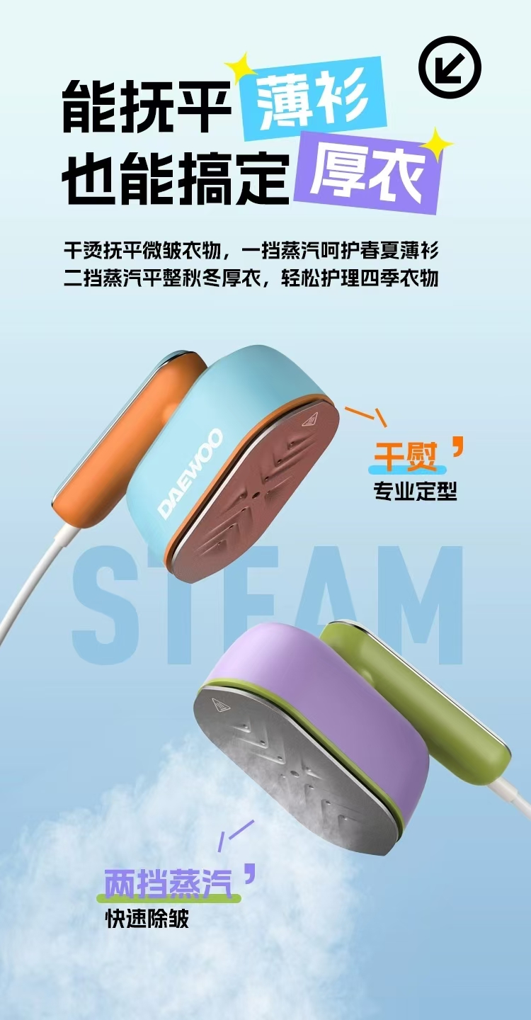 【护衣搭子】大宇新款便携蒸汽电熨斗 可挂烫可平烫HI-040