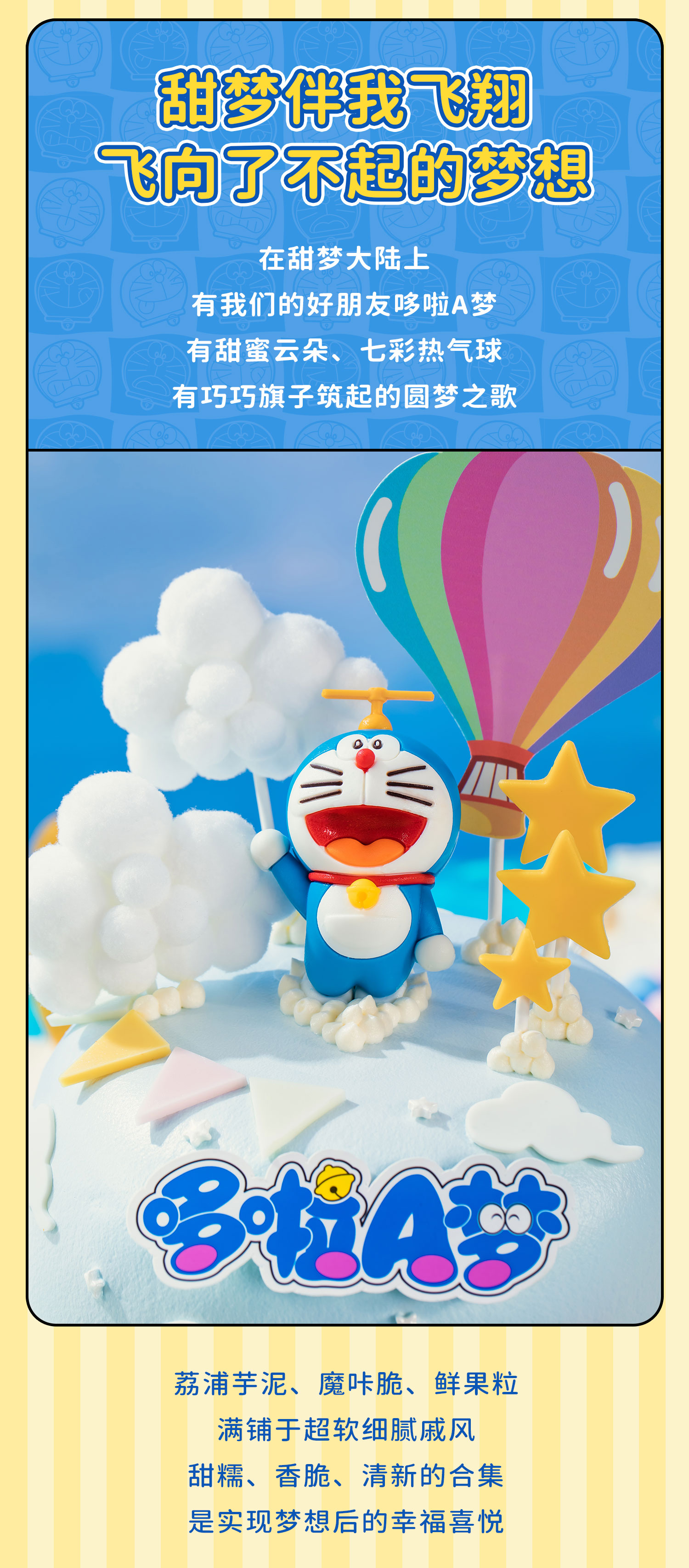 【甜梦飞行】哆啦A梦正版授权儿童生日蛋糕,让哆啦A梦带你飞进甜蜜世界,穿越芋泥、巧克力、果粒之间,每一口都是幸福的魔法充满惊喜