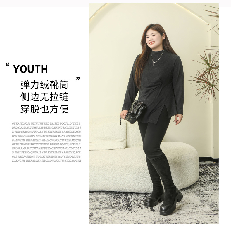 【弹力绒瘦瘦靴】现货,定制打版款!肉肉脚、高脚背可以穿!鞋头、鞋身放量,上脚显腿直显腿瘦!