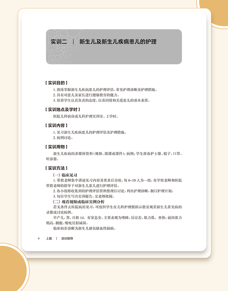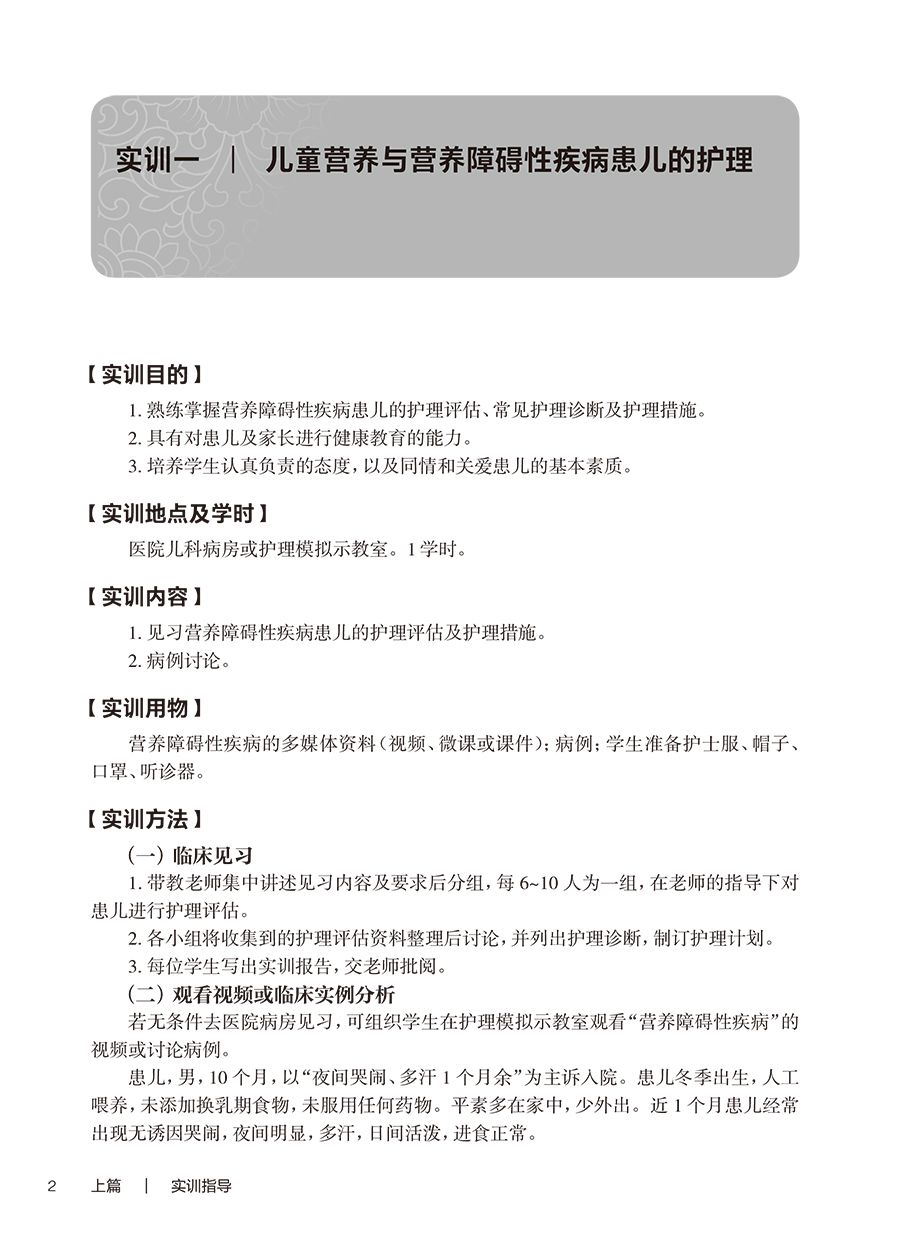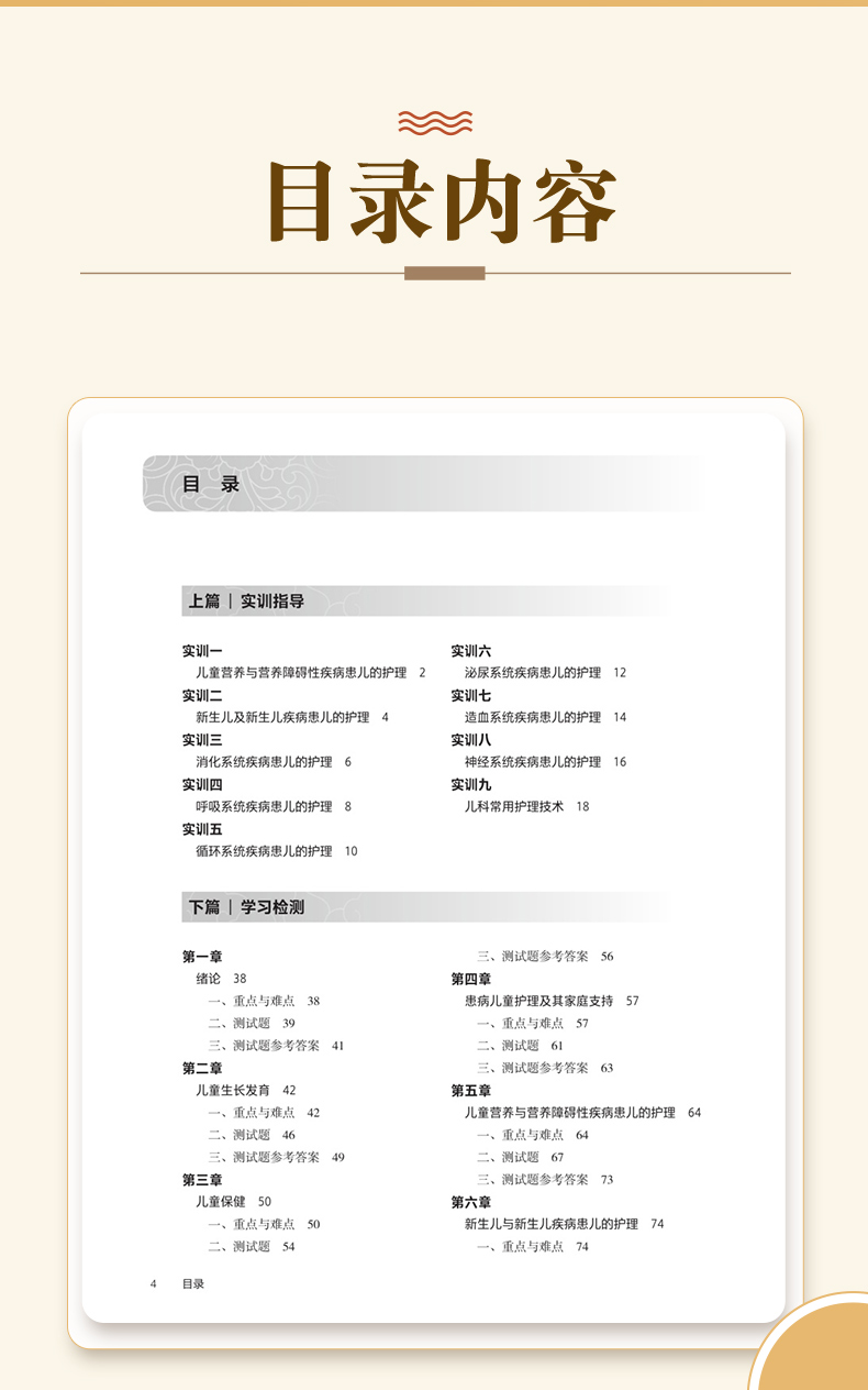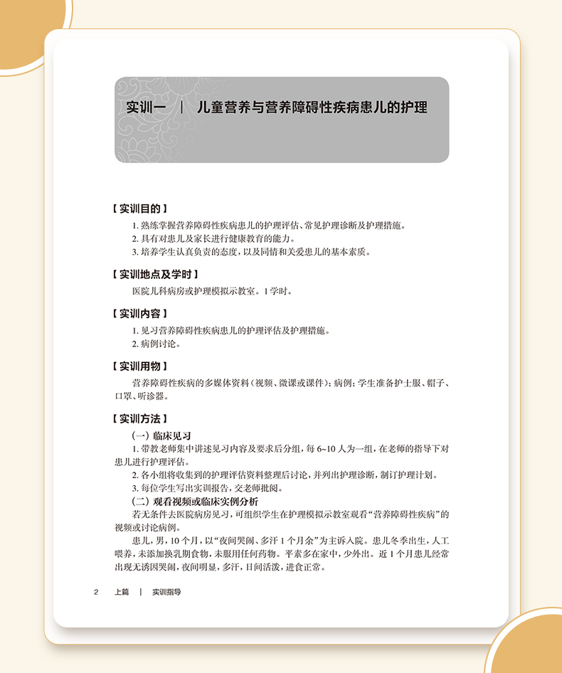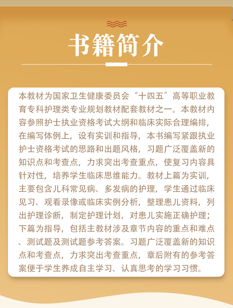 本教材为国家卫生健康委员会“十四五”高等职业教育专科护理类专业规划教材配套教材之一。本教材内容参照护士执业资格考试大纲和临床实际合理编排,在编写体例上,设有实训和指导,本书编写紧跟执业护士资格考试的思路和出题风格,习题广泛覆盖新的知识点和考查点,力求突出考查重点,使复习内容具针对性,培养学生临床思维能力。教材上篇为实训,主要包含儿科常见病、多发病的护理,学生通过临床见习、观看录像或临床实例分析,整理患儿资料,列出护理诊断,制定护理计划,对患儿实施正确护理;下篇为指导,包括主教材涉及章节内容的重点和难点、测试题及测试题参考答案。习题广泛覆盖新的知识点和考查点,力求突出考查重点,章后附有的参考答案便于学生养成自主学习、认真思考的学习习惯。