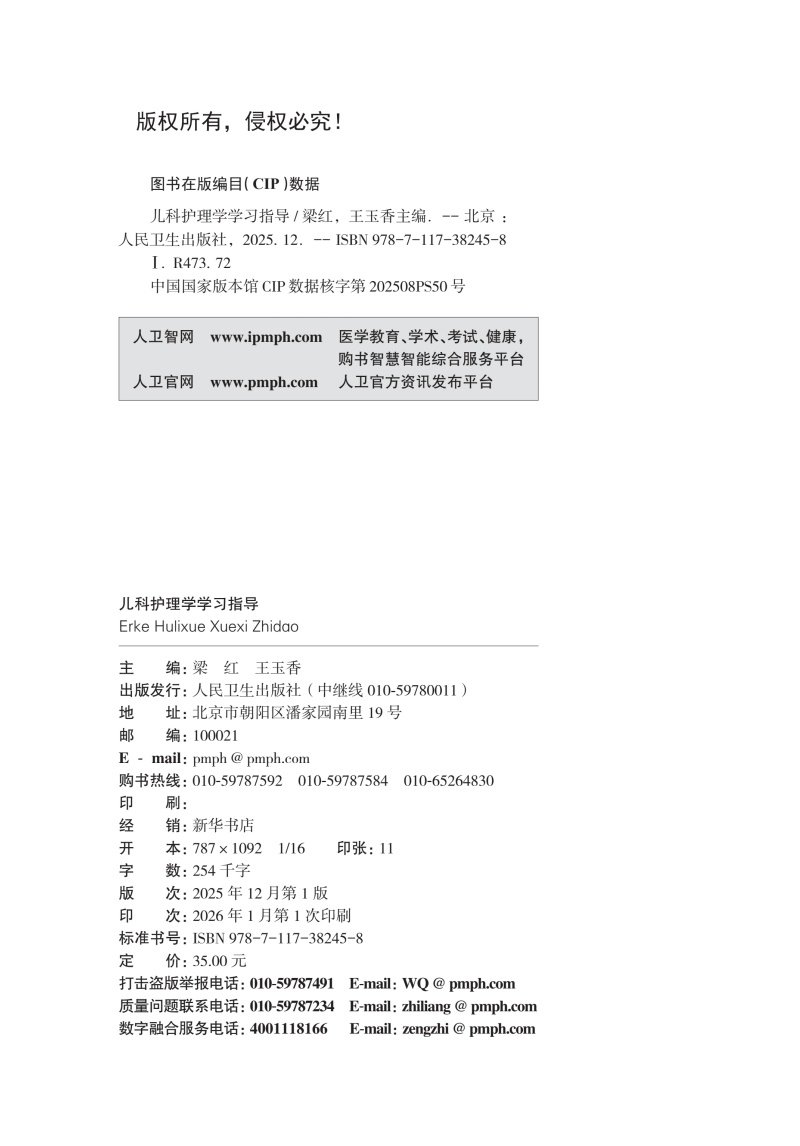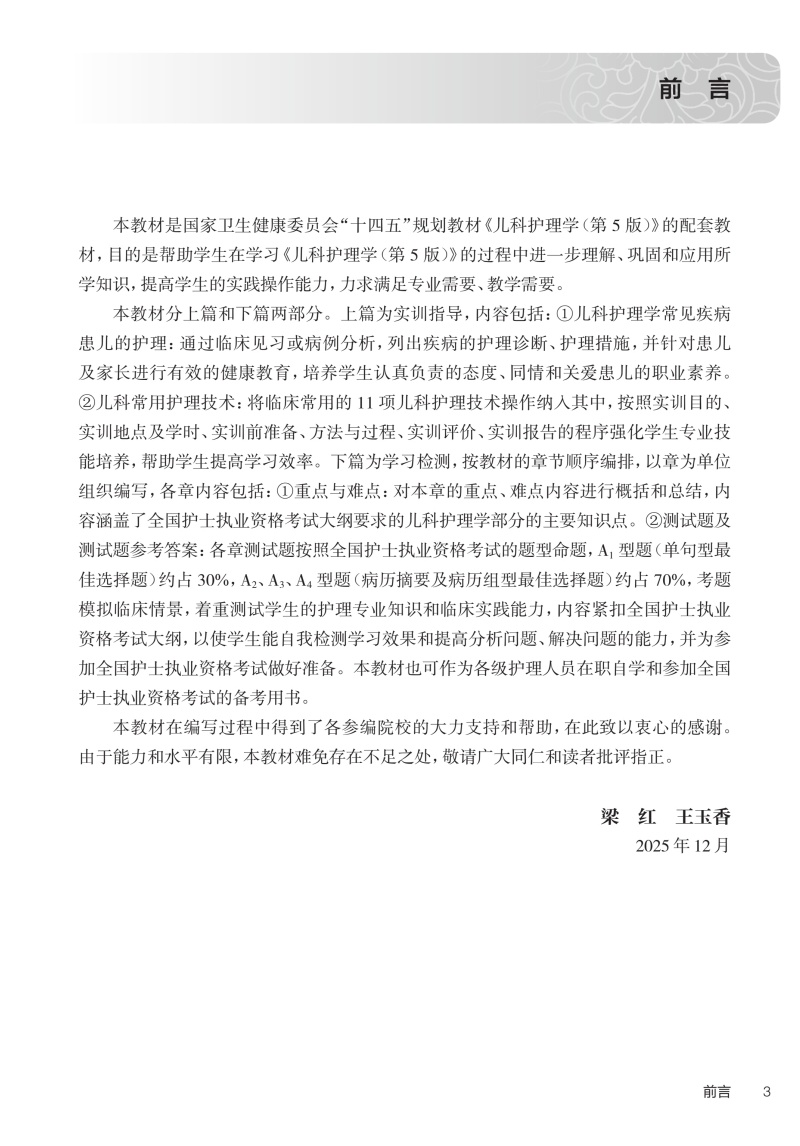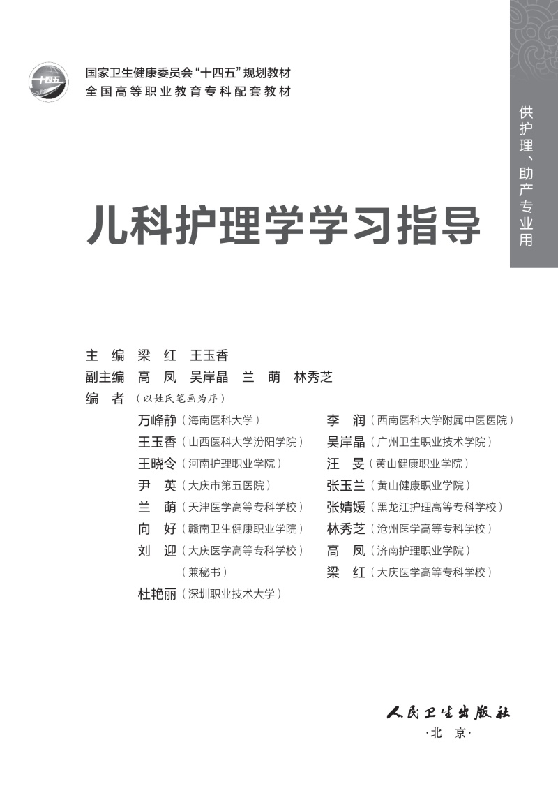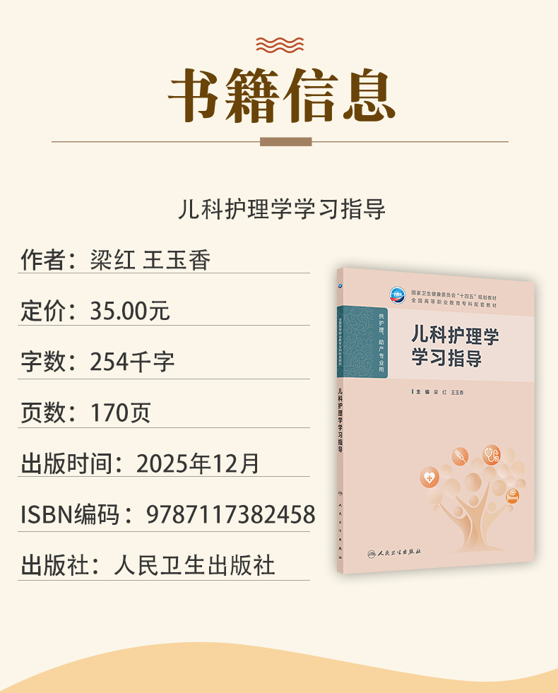 儿科护理学学习指导 十四五规划教材 全国高等职业教育专科配套教材 梁红 王玉香 供护理助产专业用 9787117382458人民卫生出版社