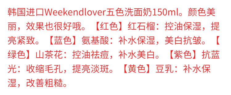 【爆款超低价预售 急单慎拍】韩国进口wkl五色洗面奶去油淡斑美白洁面乳深层清洁去黑头150g