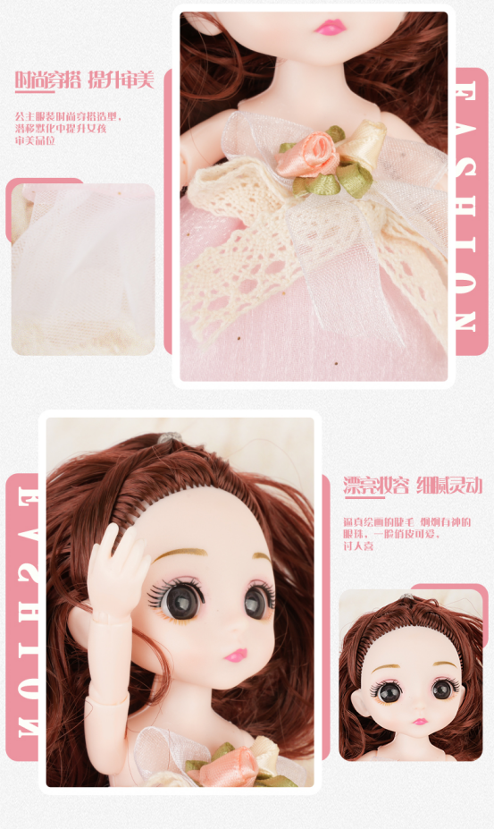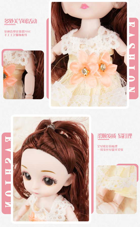 礼盒包装,送礼自用都带点小高级! 衣服精心搭配,每款都很精致漂亮! 6款6只娃娃,衣服款式不重复! 搭配丰富配件,可自由梳妆打扮! 出口品质,线下商场包装!