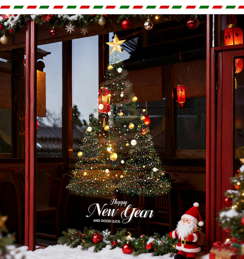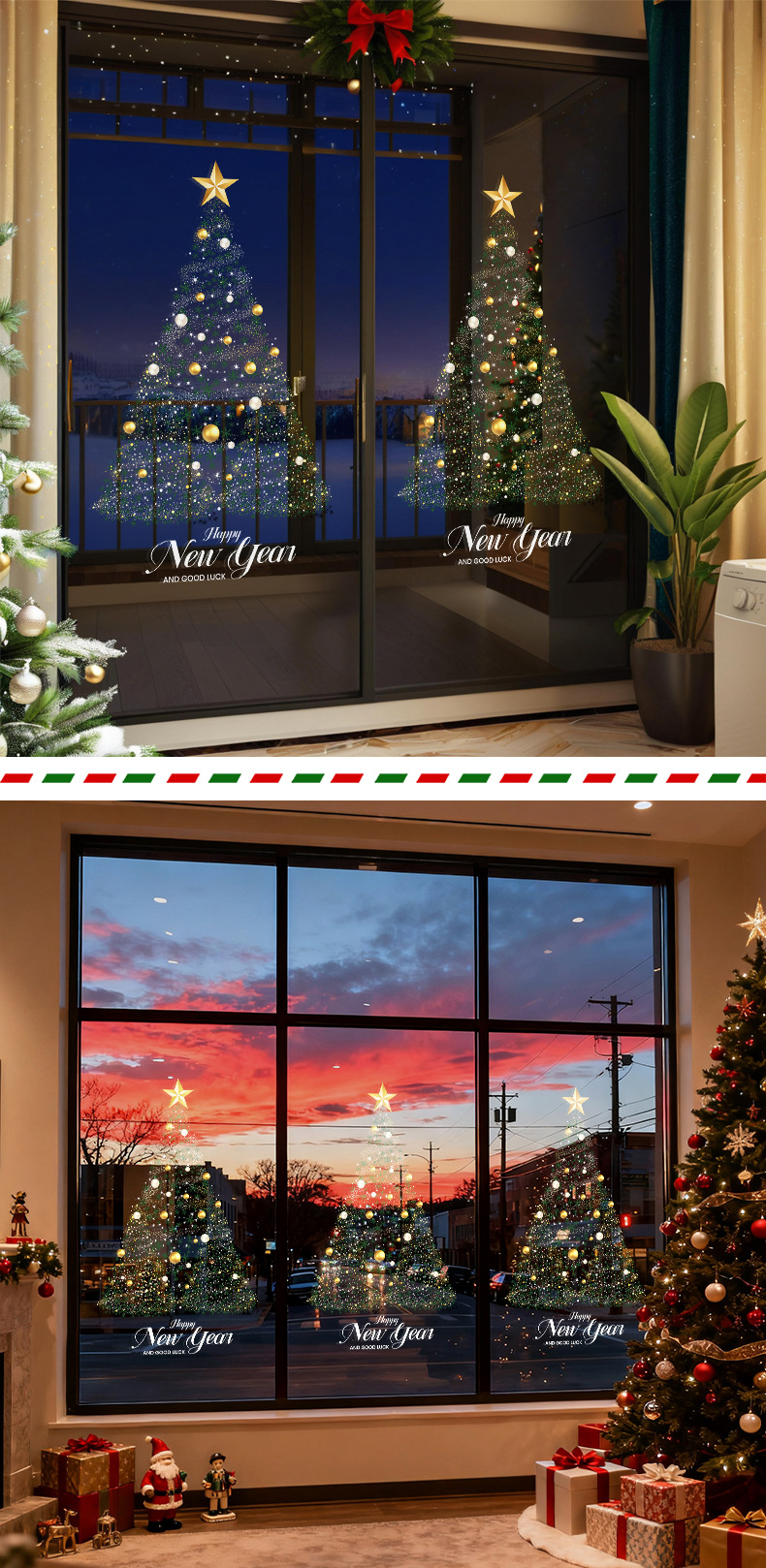 【经典好看图案❗️易移除可反复使用】新款圣诞节装饰品静电贴圣诞树窗花场景布置玻璃门氛围贴纸。jb