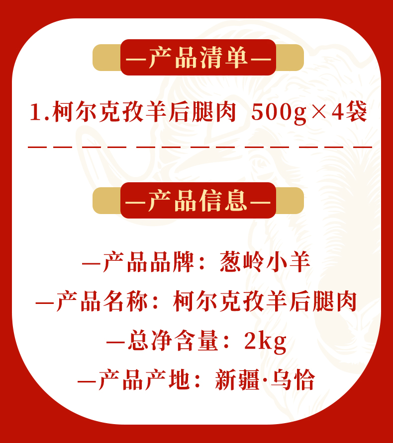 【品牌 葱岭小羊】柯尔克孜羊后腿肉(含骨)