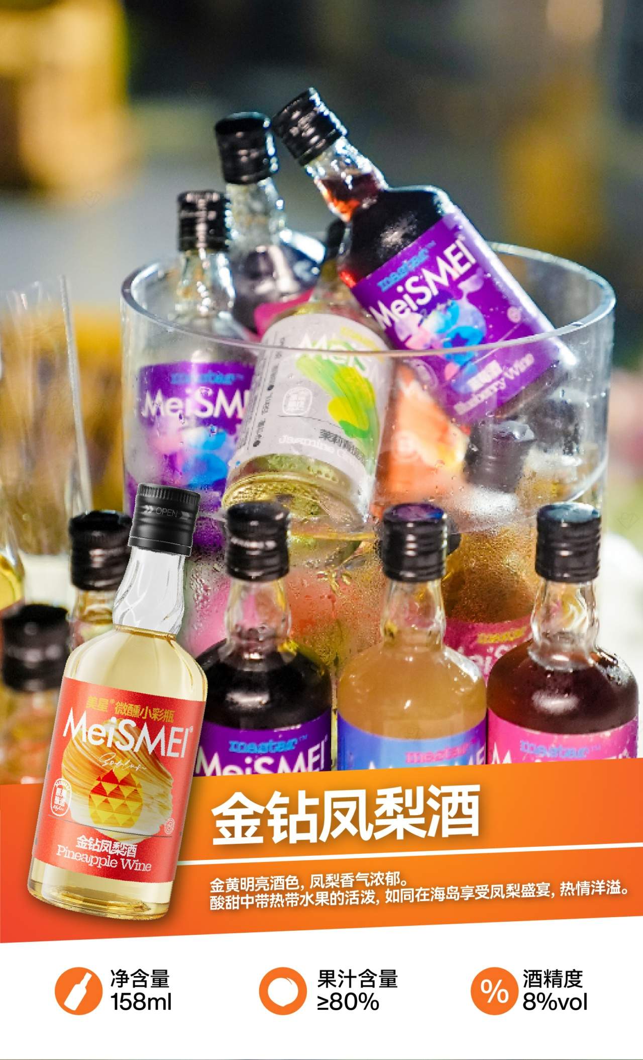 美星微醺小彩瓶8度发酵果酒 高比例真原果发酵 低度甜酒