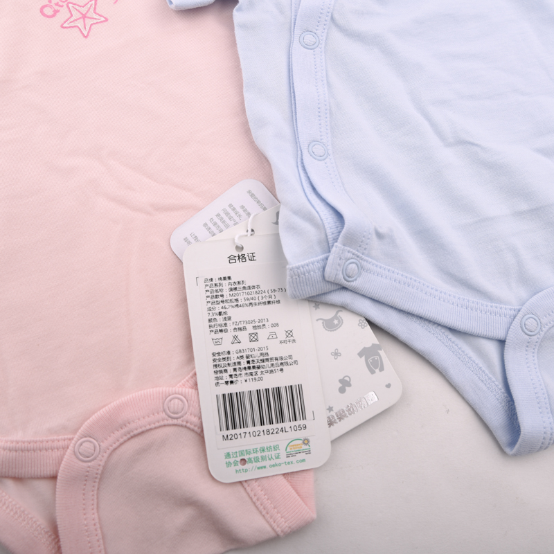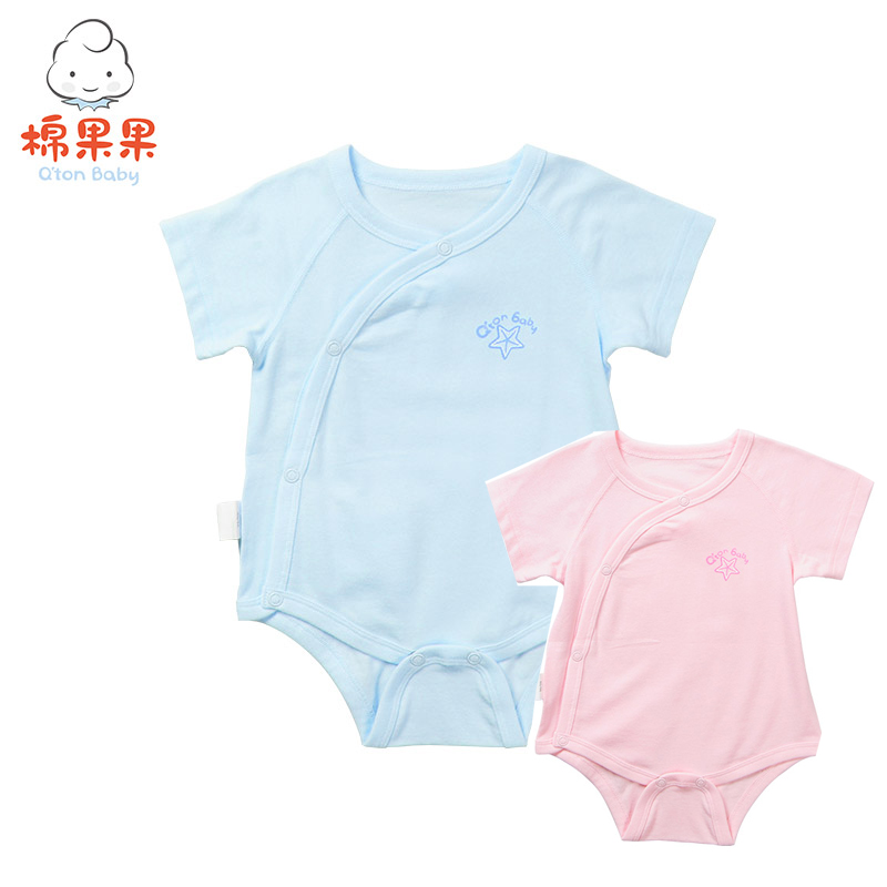 棉果果夏季男童女童内衣短袖偏襟三角连体衣连身衣哈衣M201710218224