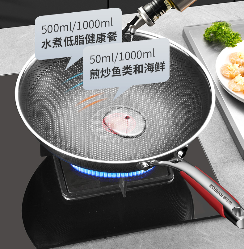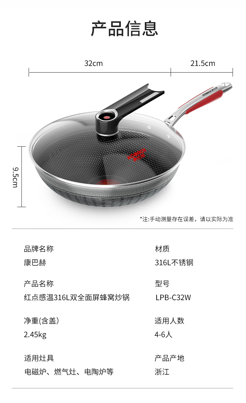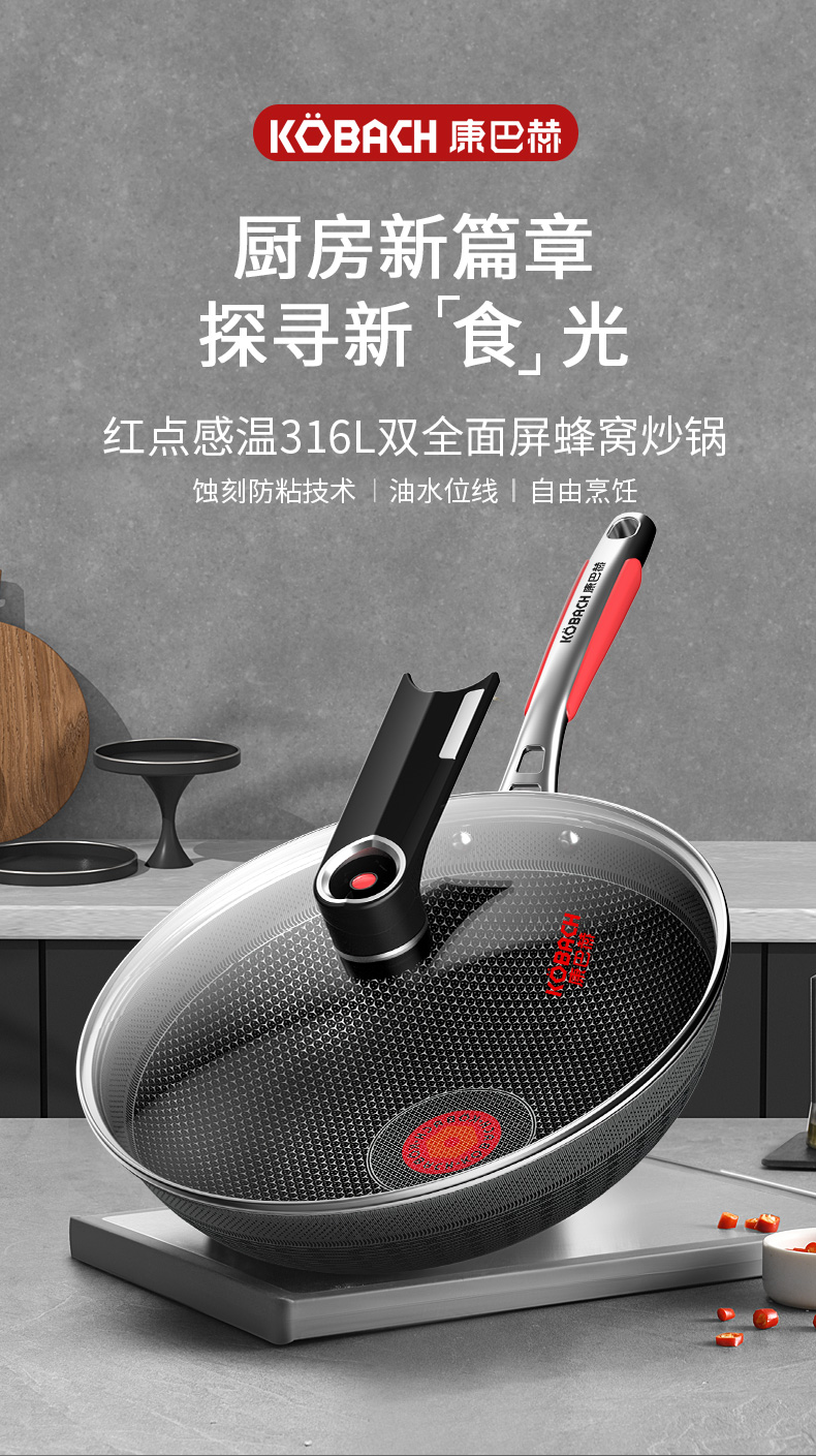 康巴赫红点感温316L双全面屏炒锅LPB-C32W【分仓直发,72小时发货,周末节假日不发货】