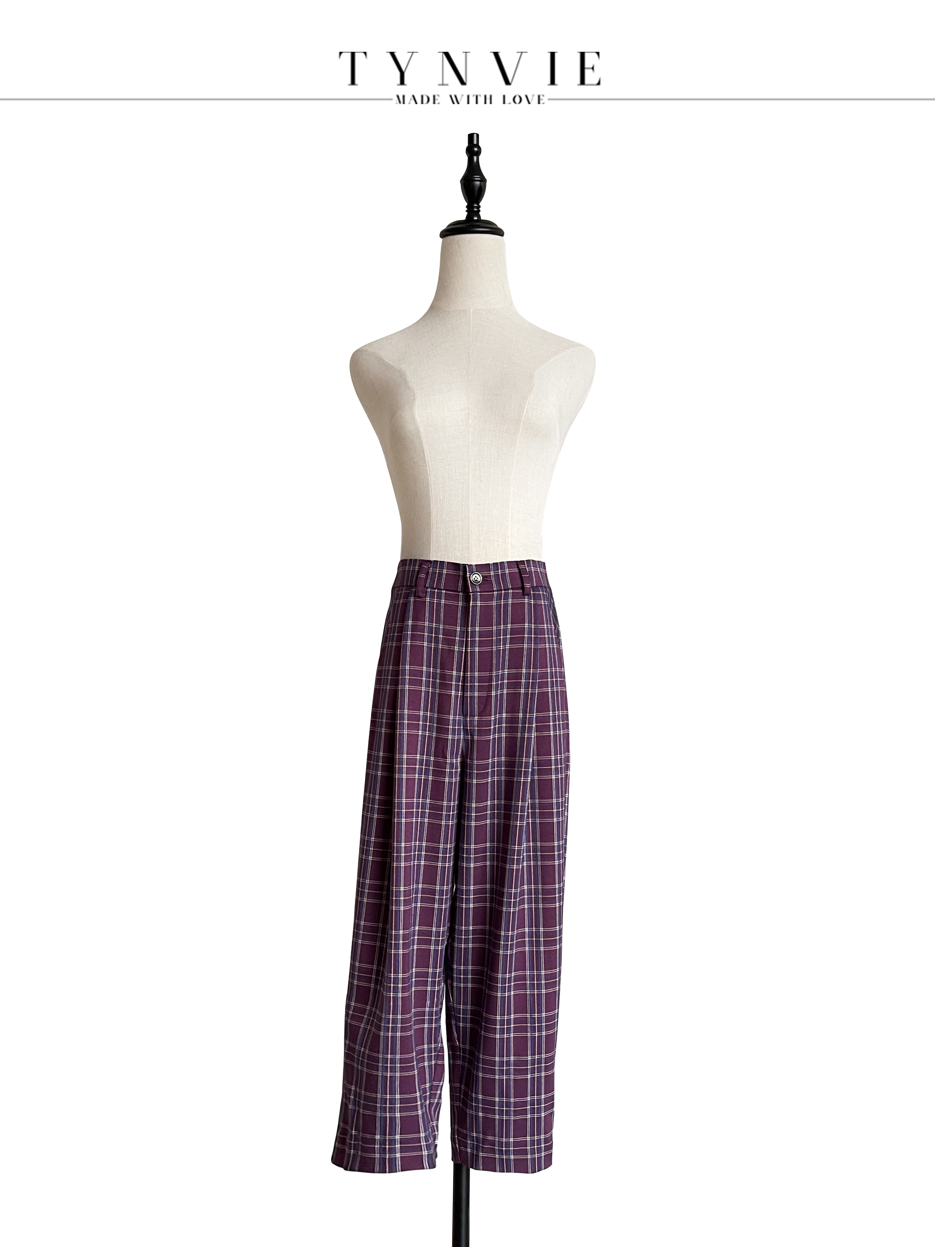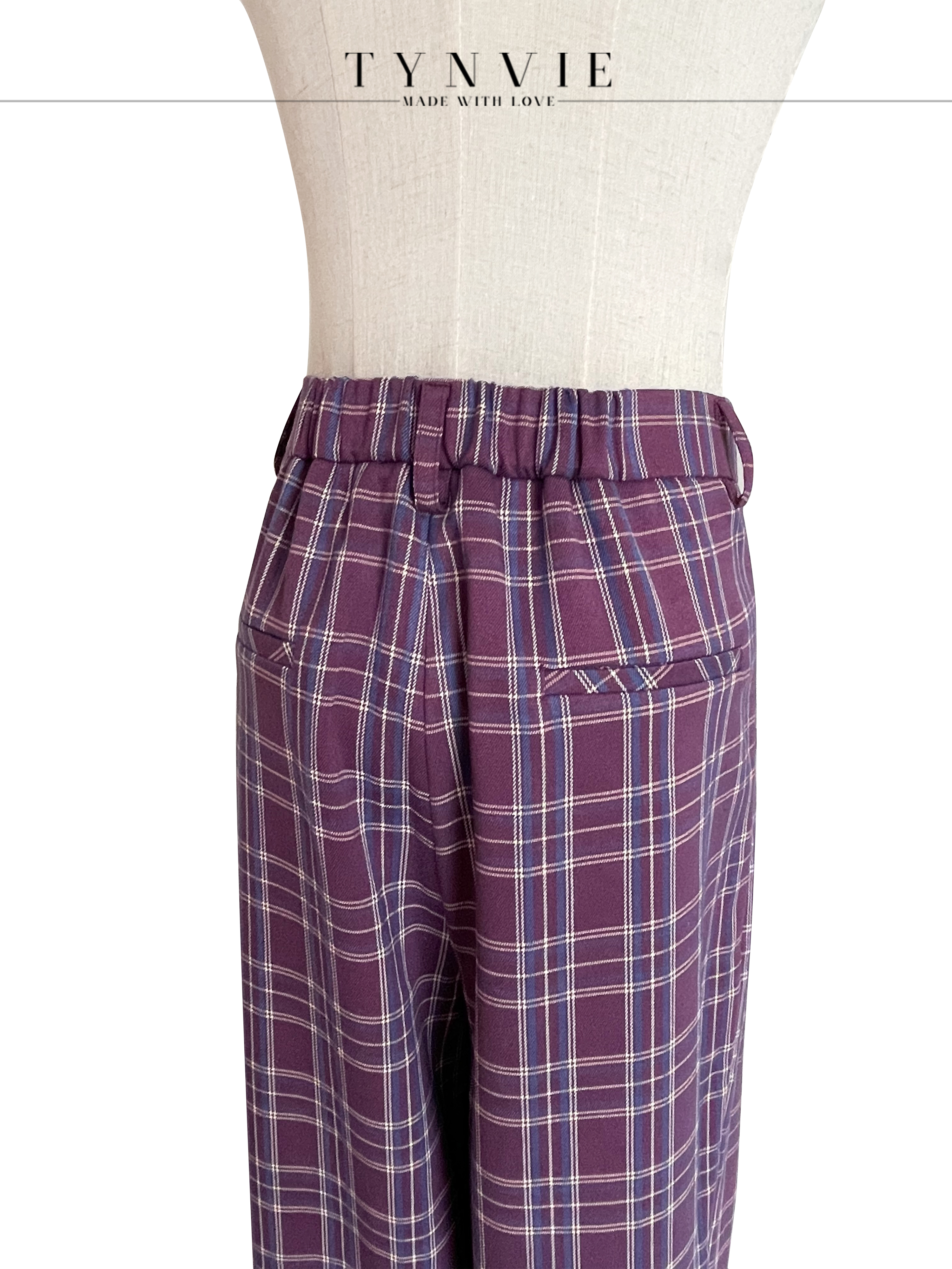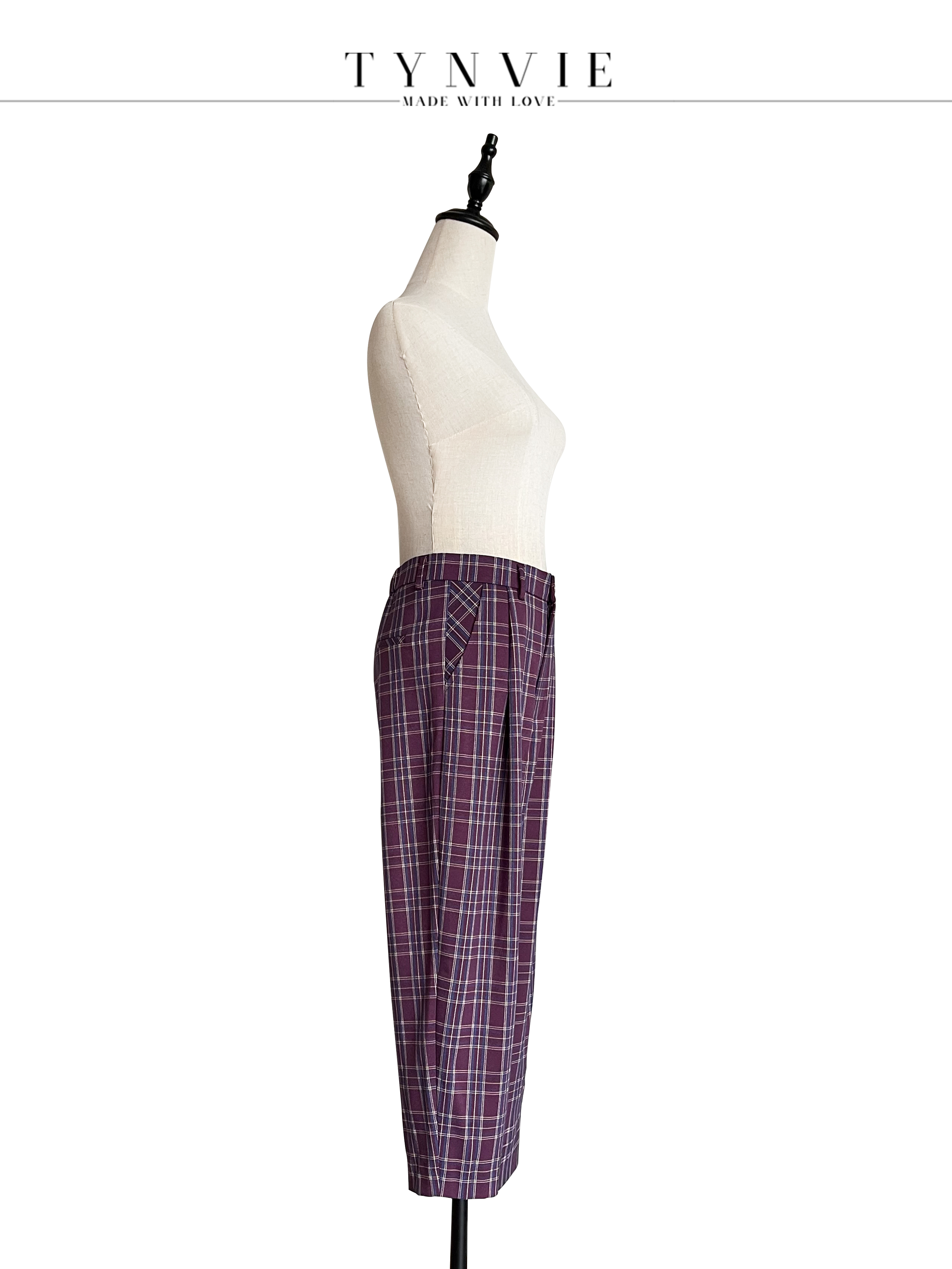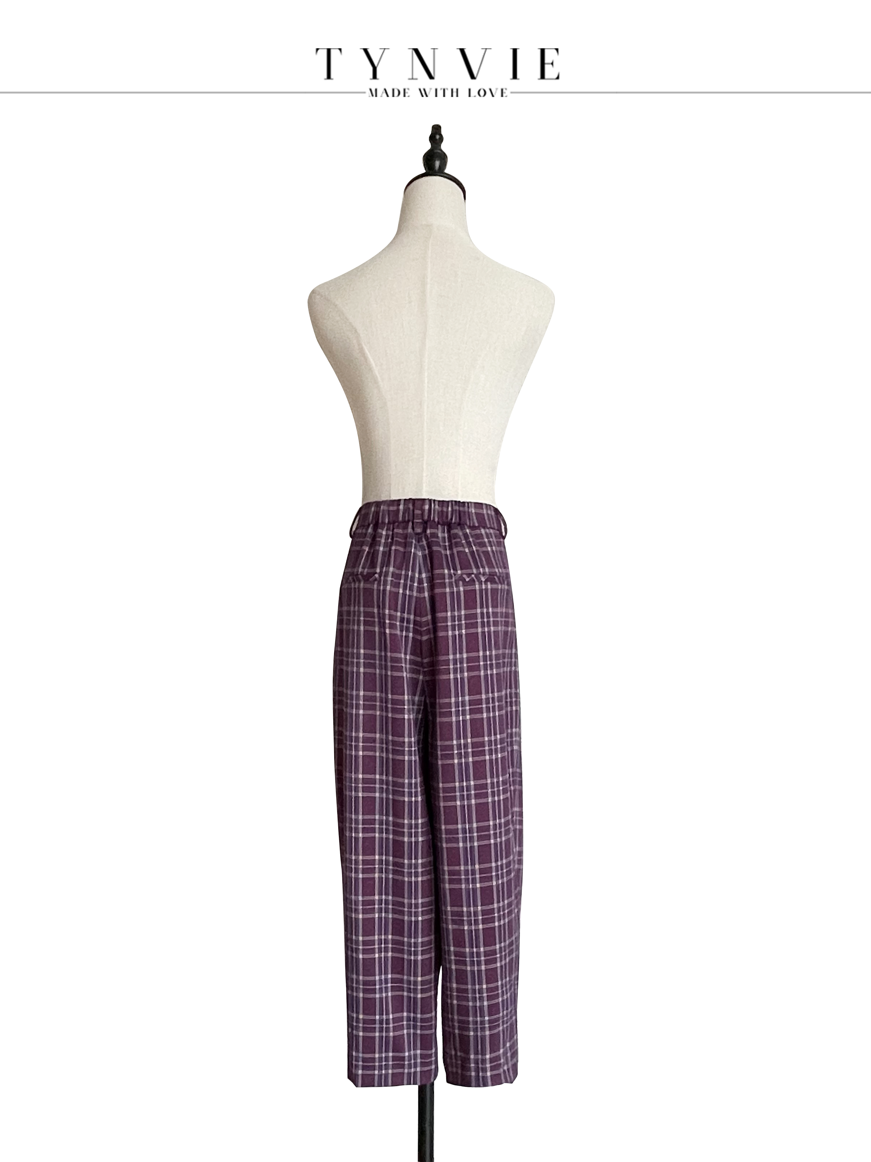 TYNVIE插袋9分萝卜裤-紫格纹