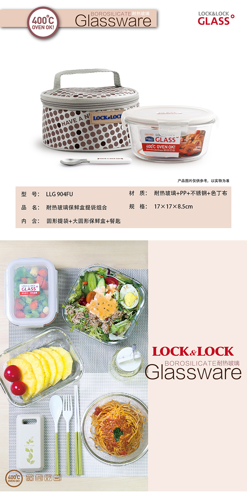 乐扣乐扣 耐热玻璃保鲜盒提袋组合LLG 906FU/LLG 904FU