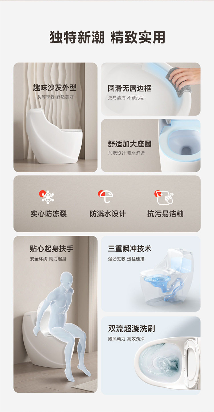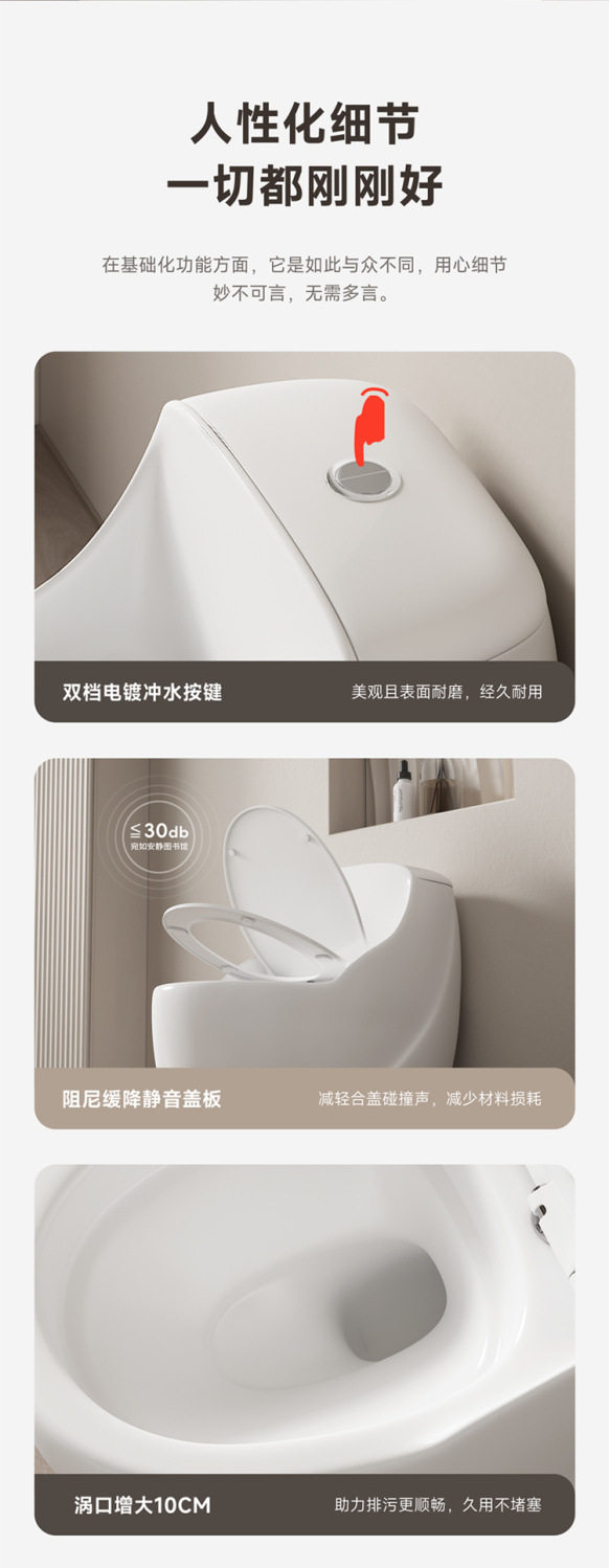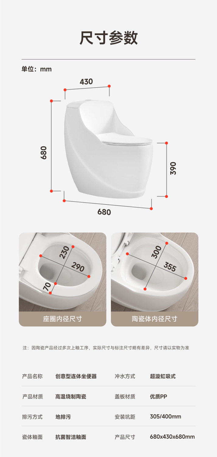 小户型蛋形大马桶家用坐口径静音漩防臭节水虹吸式便超