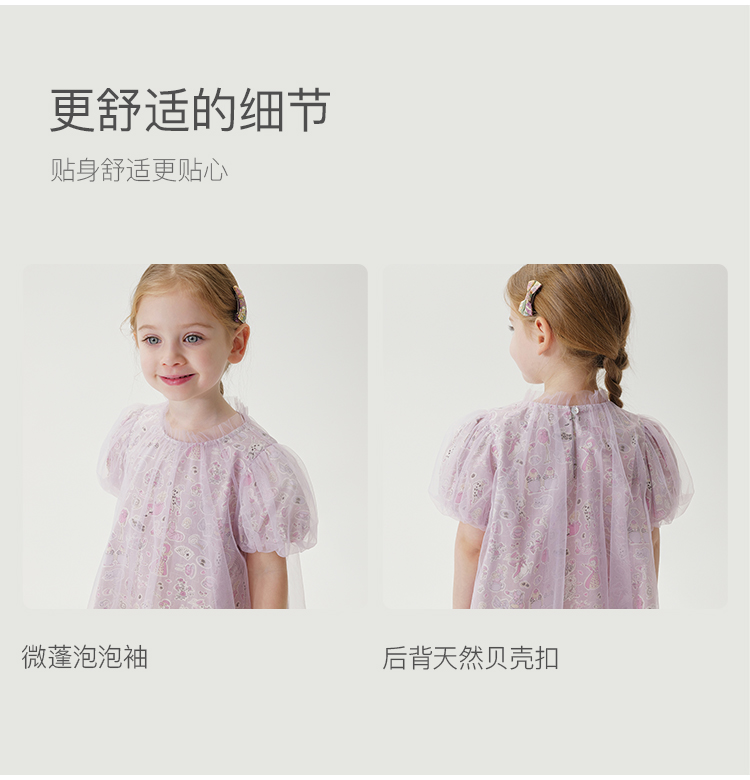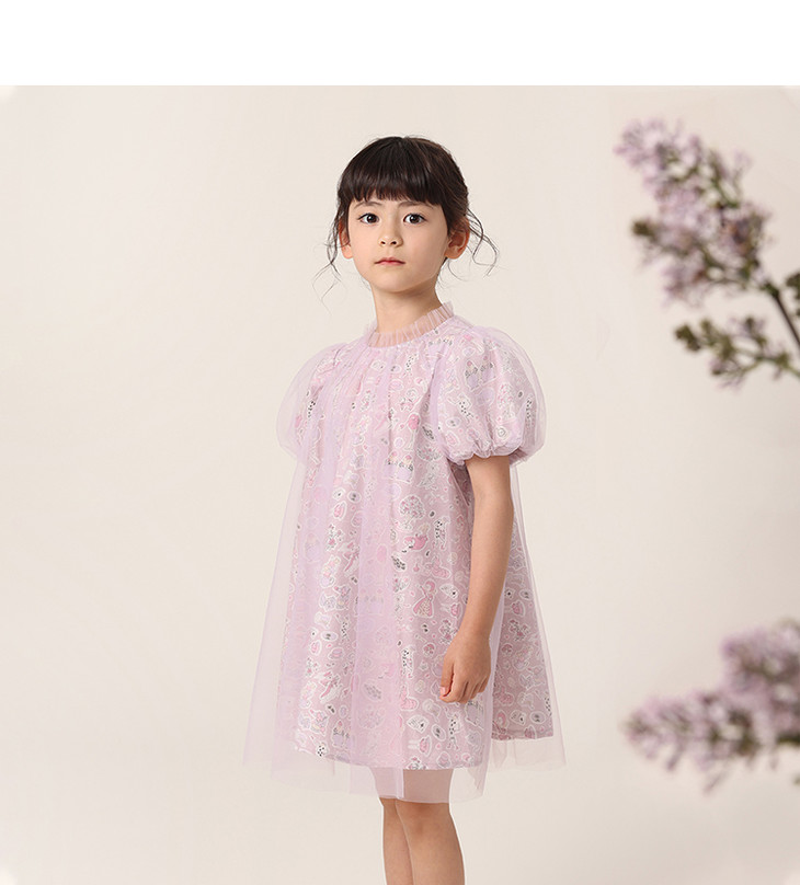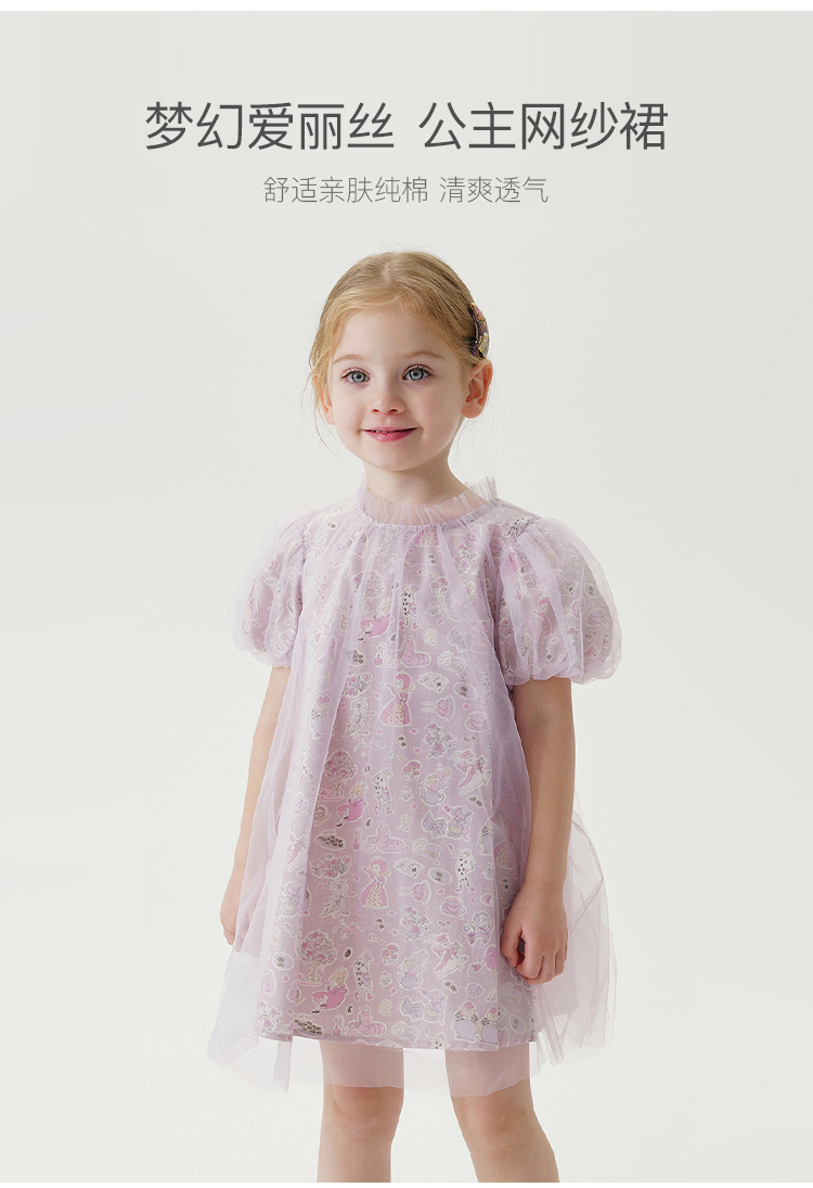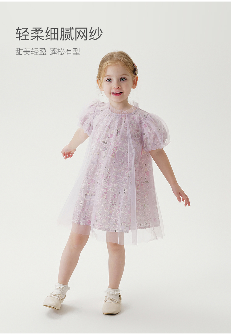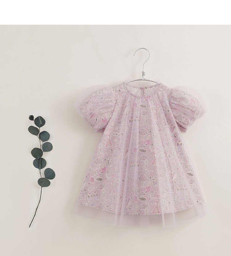 【马克珍妮 芦芙】夏装新款 女童梦幻泡泡袖网纱连衣裙230869