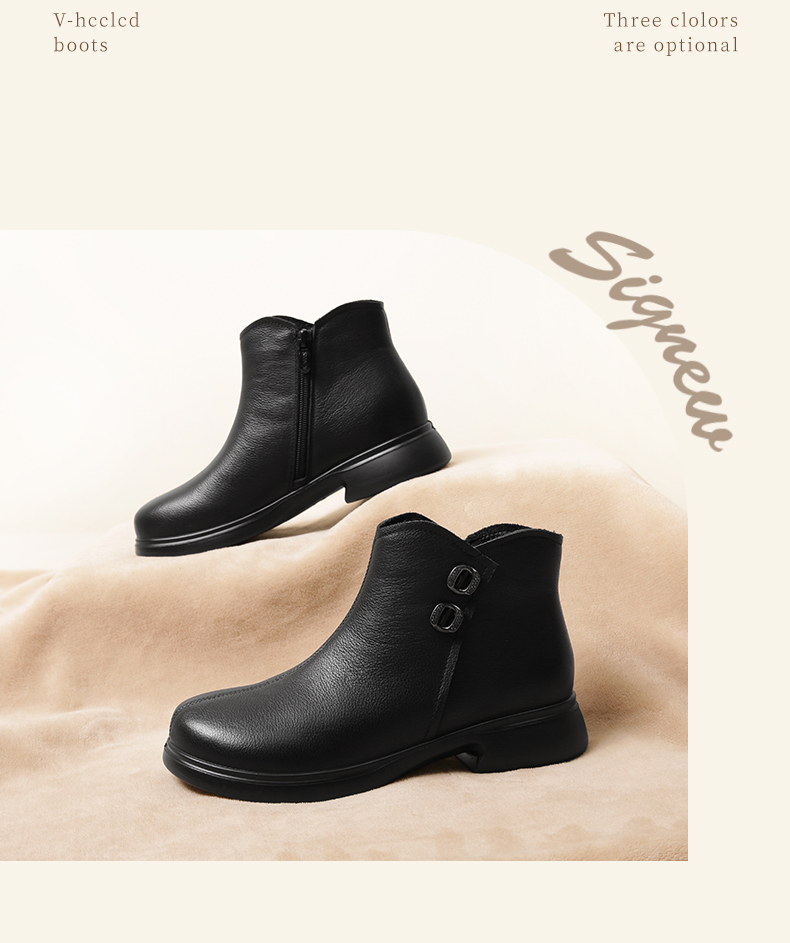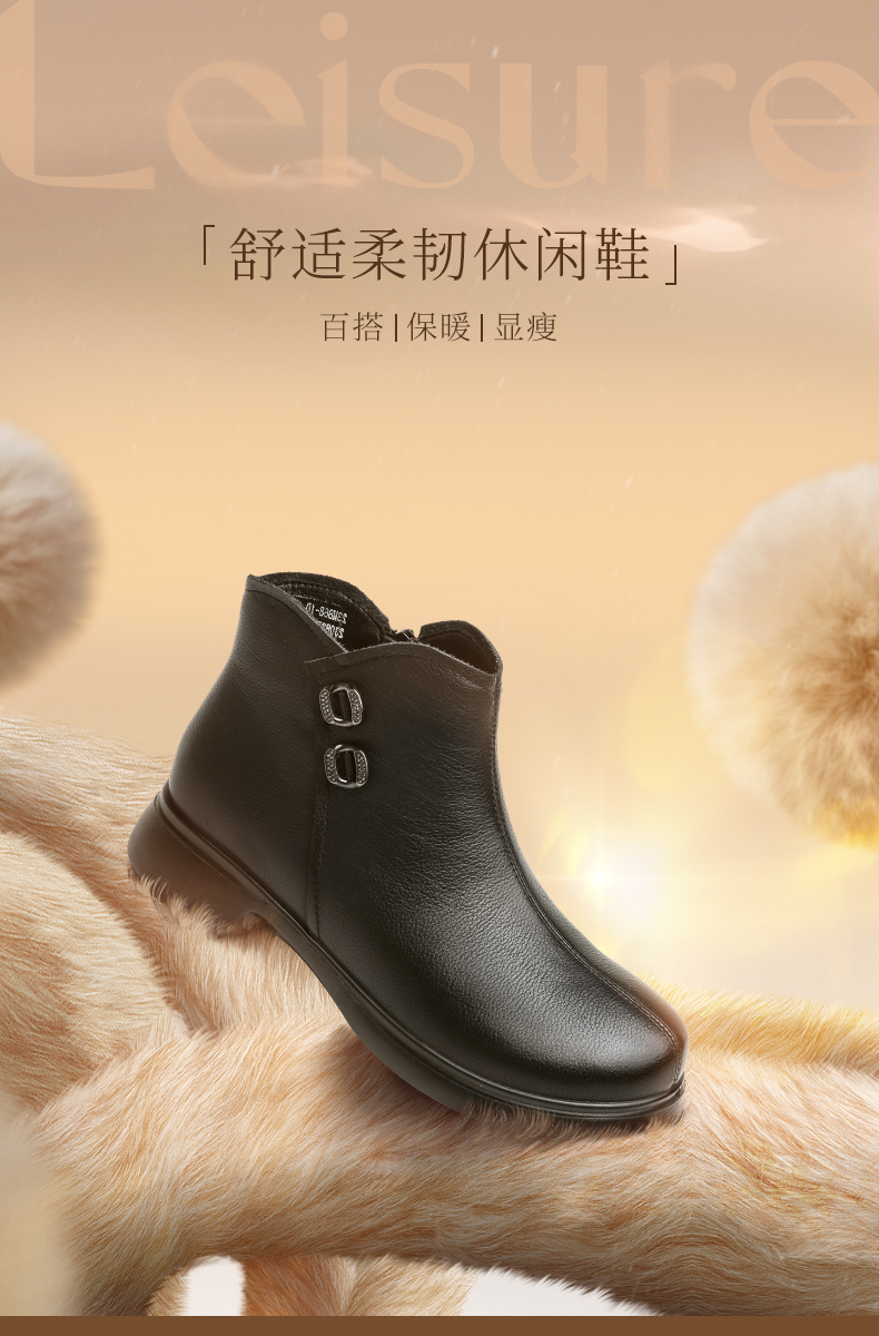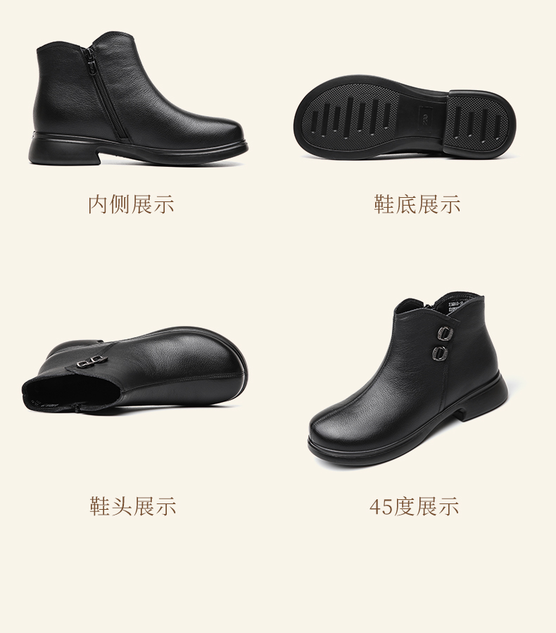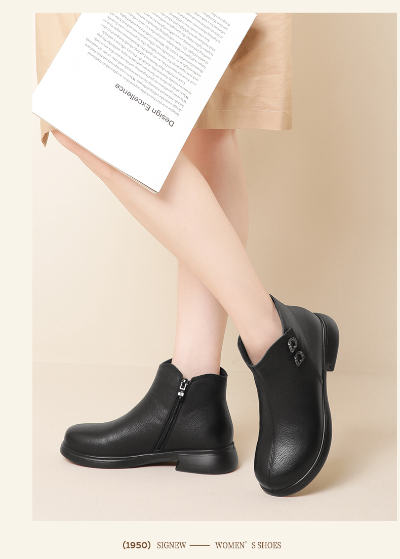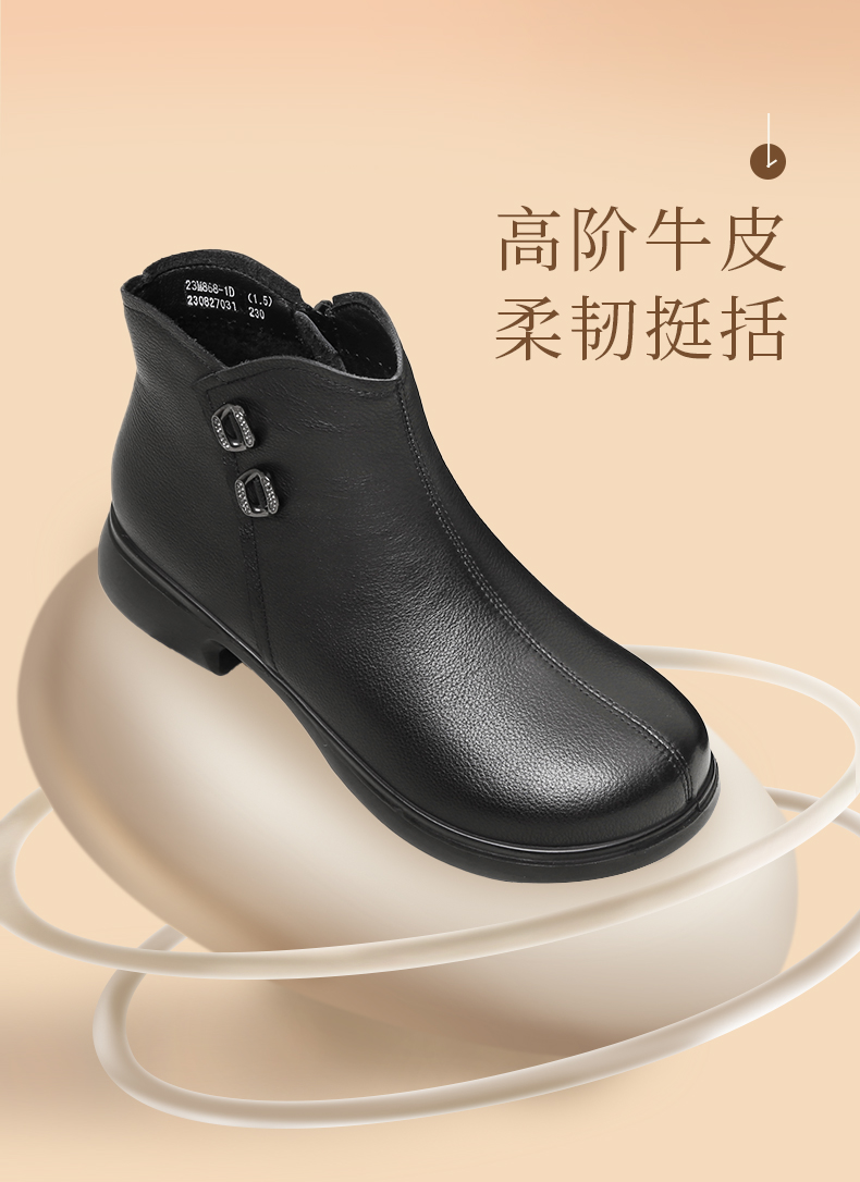 信诺真皮加绒妈妈鞋短靴2023冬季新款软底舒适及踝靴中老年女皮鞋23M868-1D