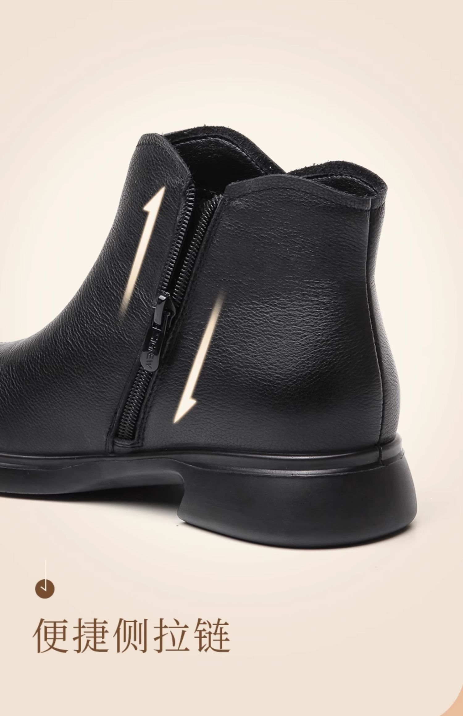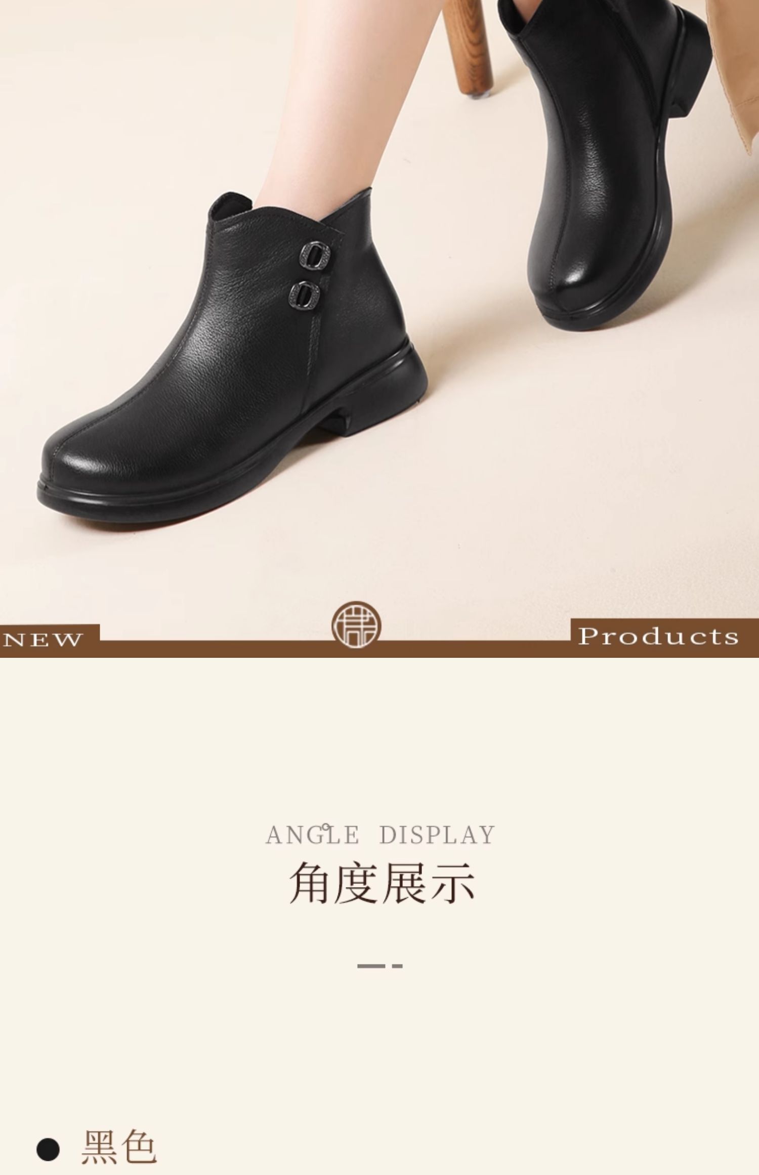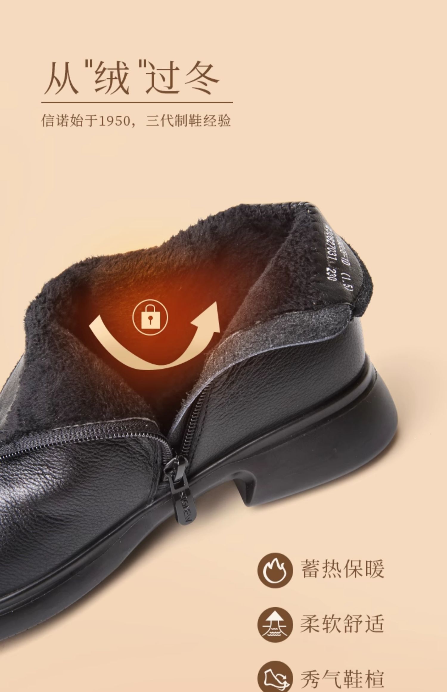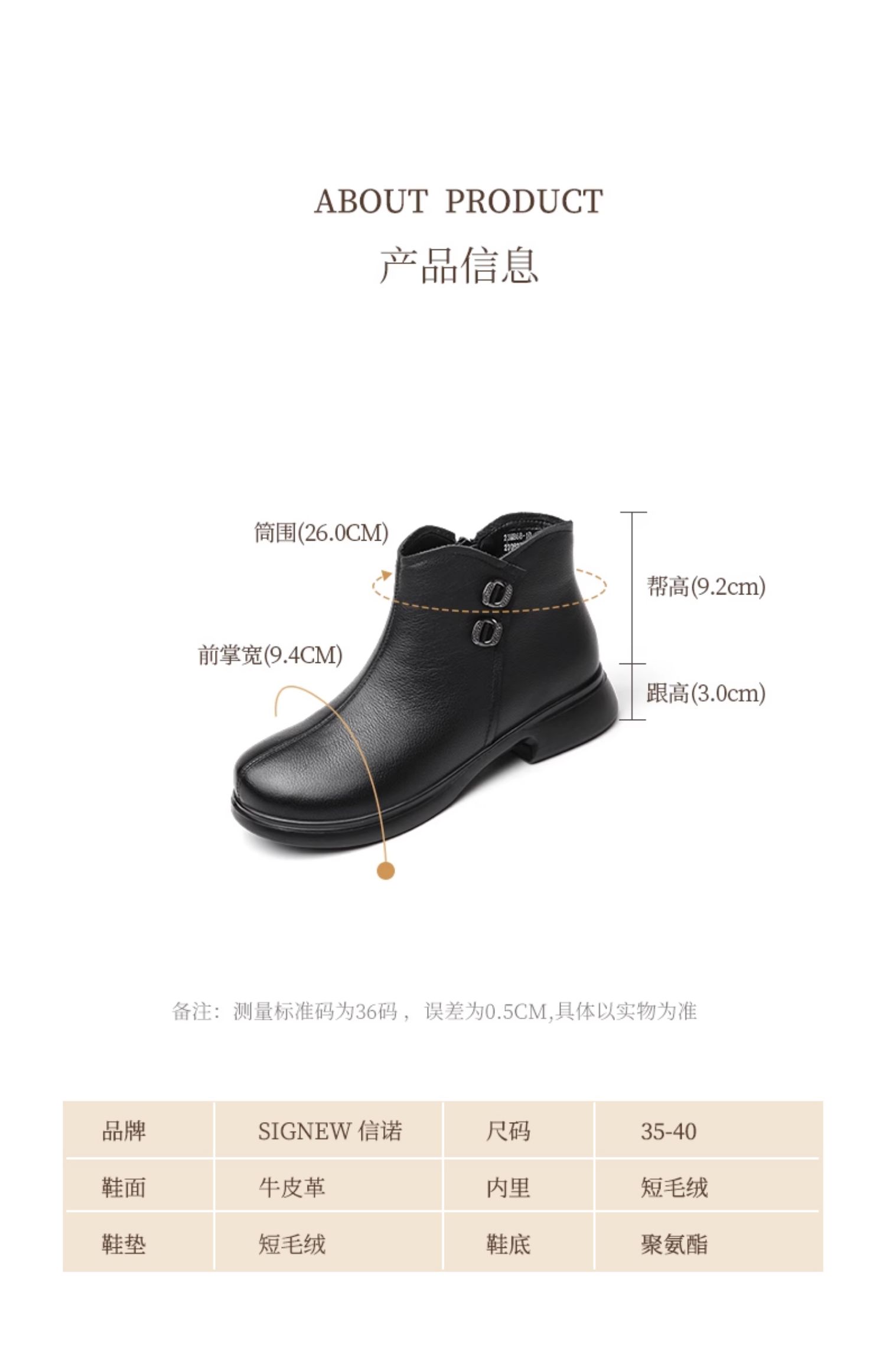 信诺真皮加绒妈妈鞋短靴2023冬季新款软底舒适及踝靴中老年女皮鞋23M868-1D