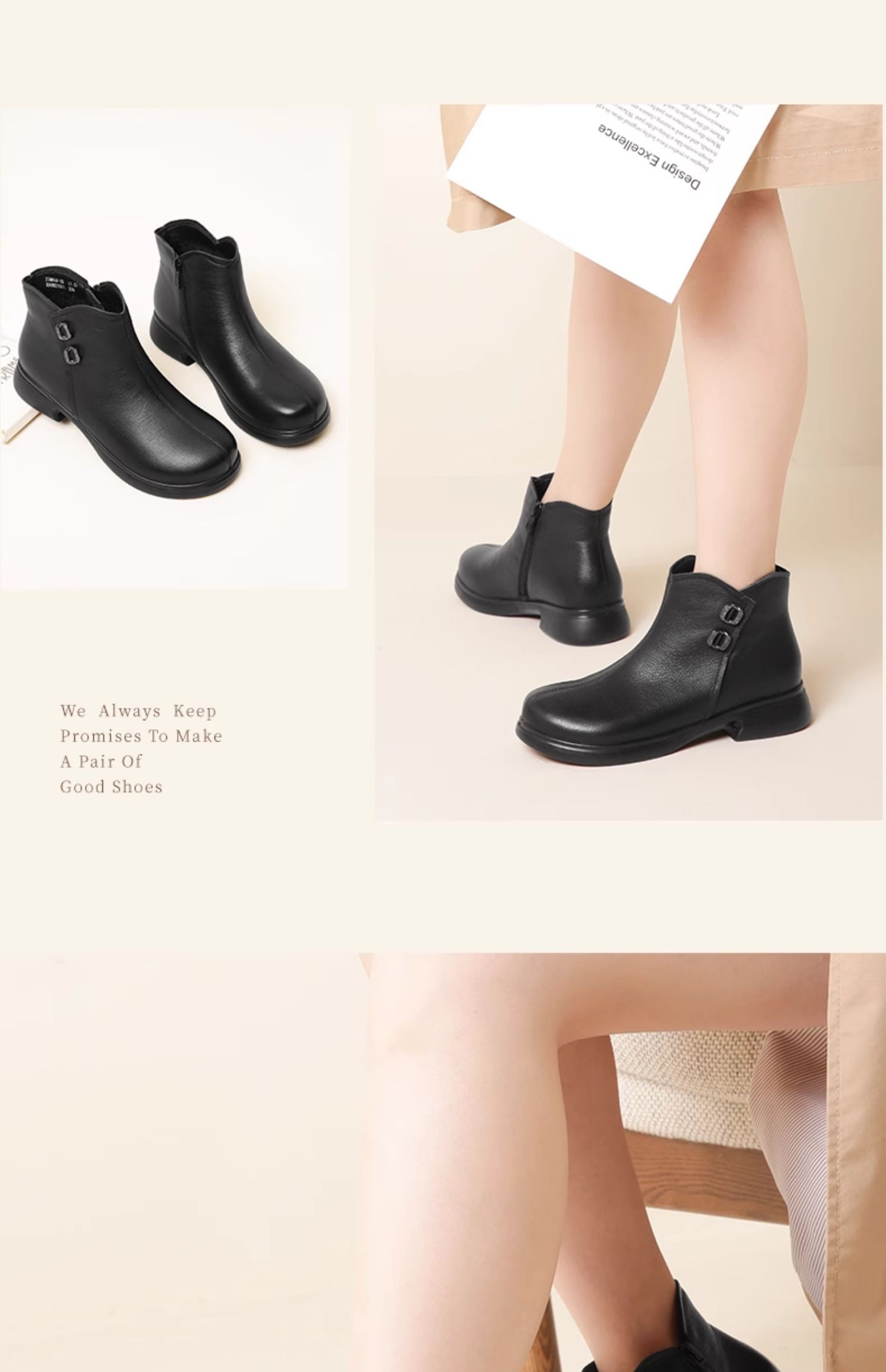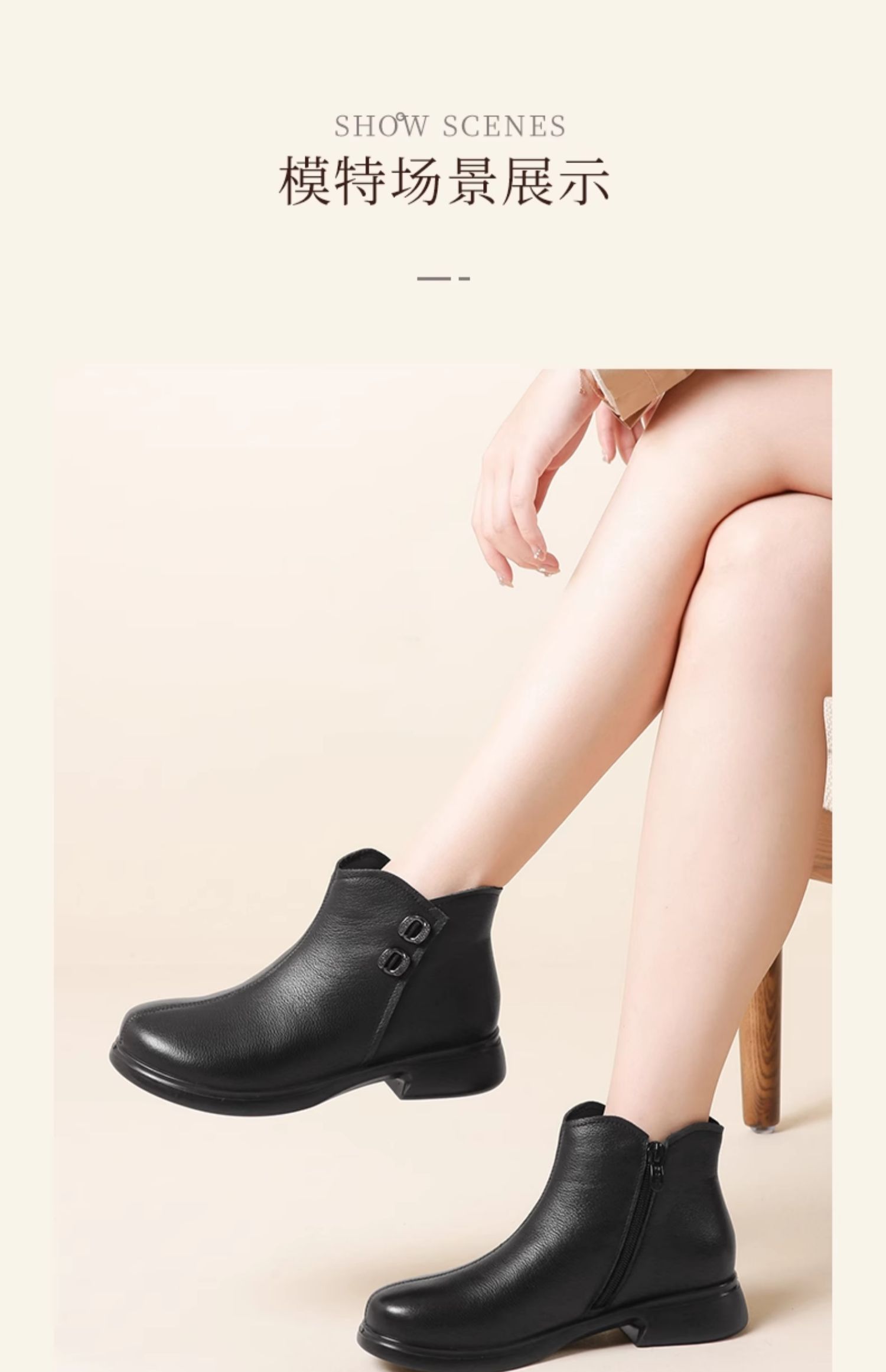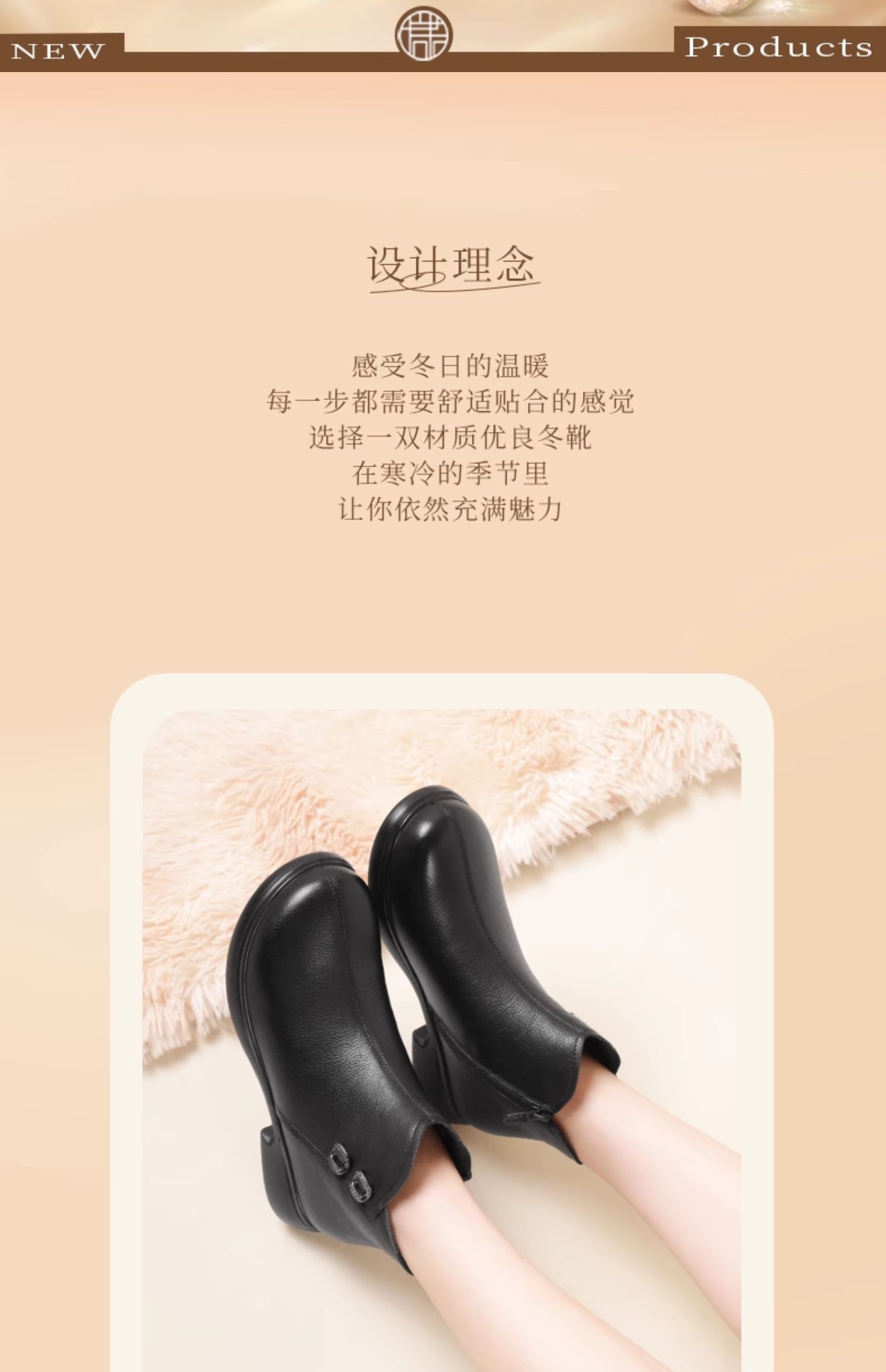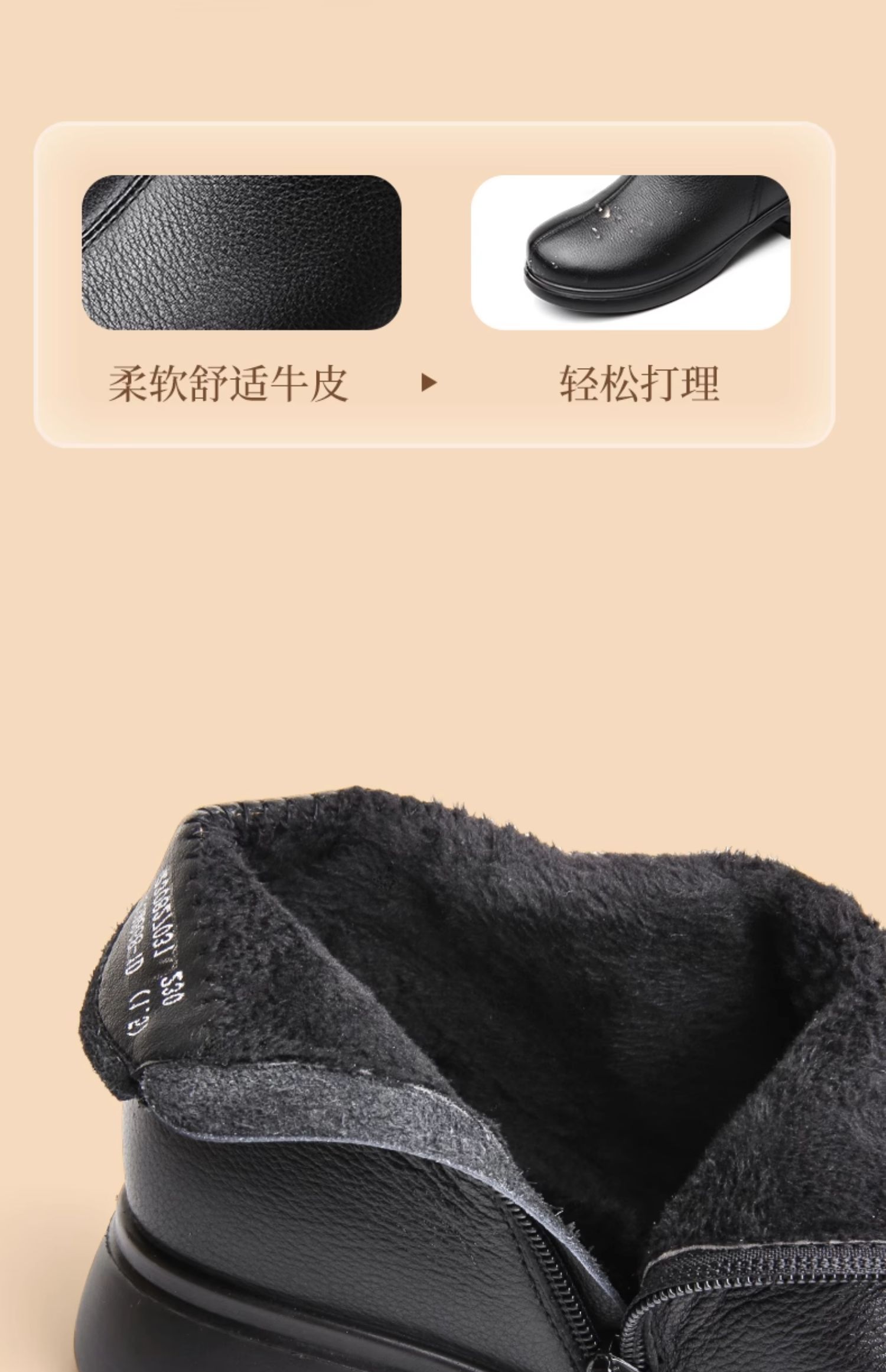 信诺真皮加绒妈妈鞋短靴2023冬季新款软底舒适及踝靴中老年女皮鞋23M868-1D