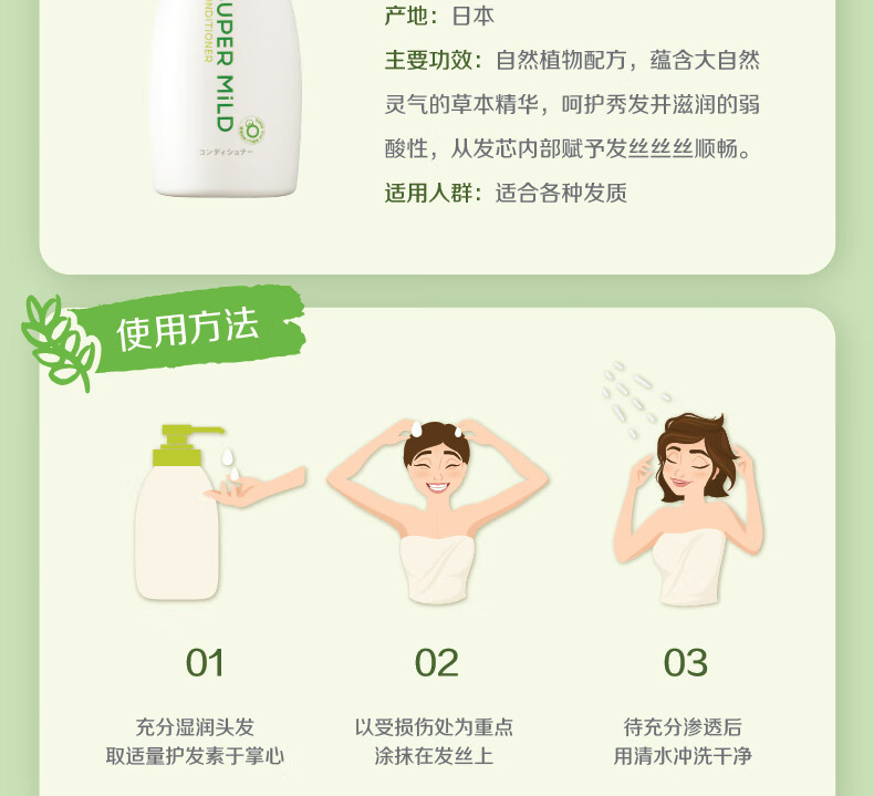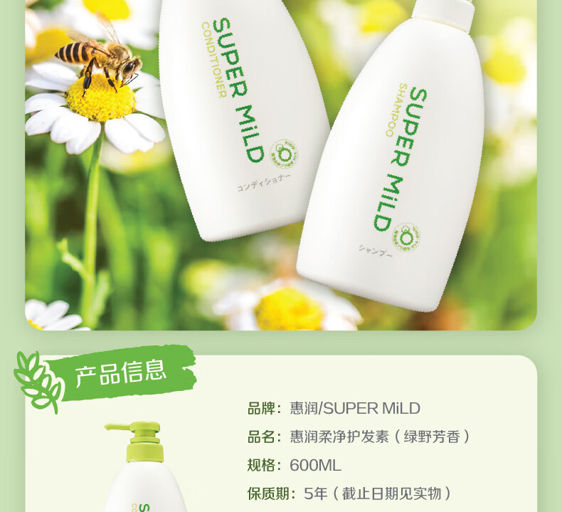惠润(SUPER MiLD)护发素柔净绿野芳香润发乳600ml男女通用去毛躁护发乳