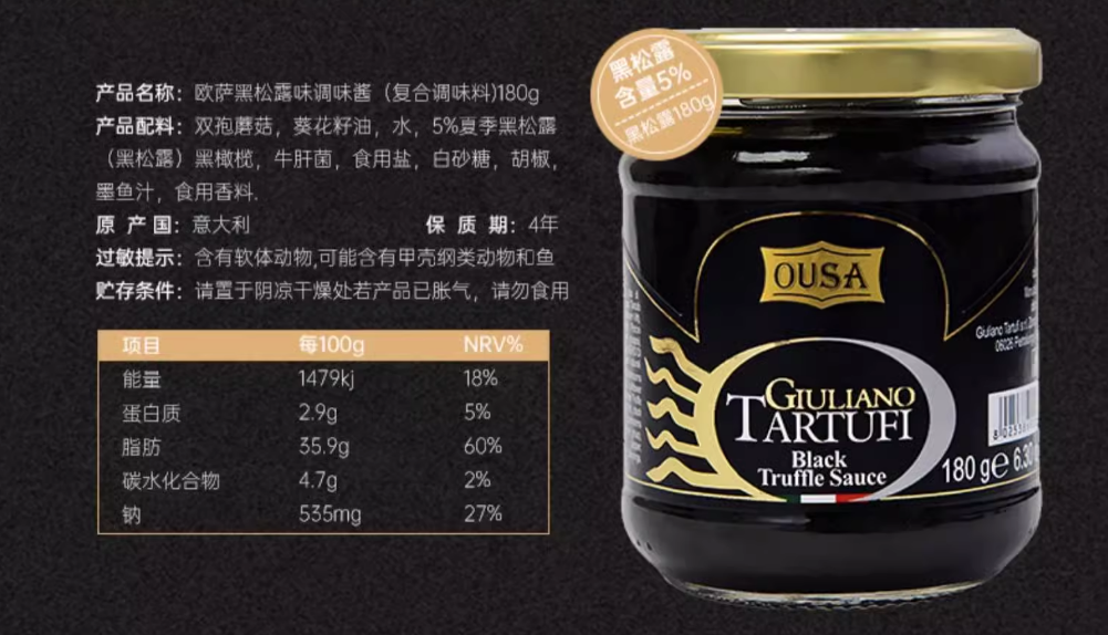 180g 欧萨 黑松露味调味酱 意大利进口 意面牛排面包西餐调味酱料