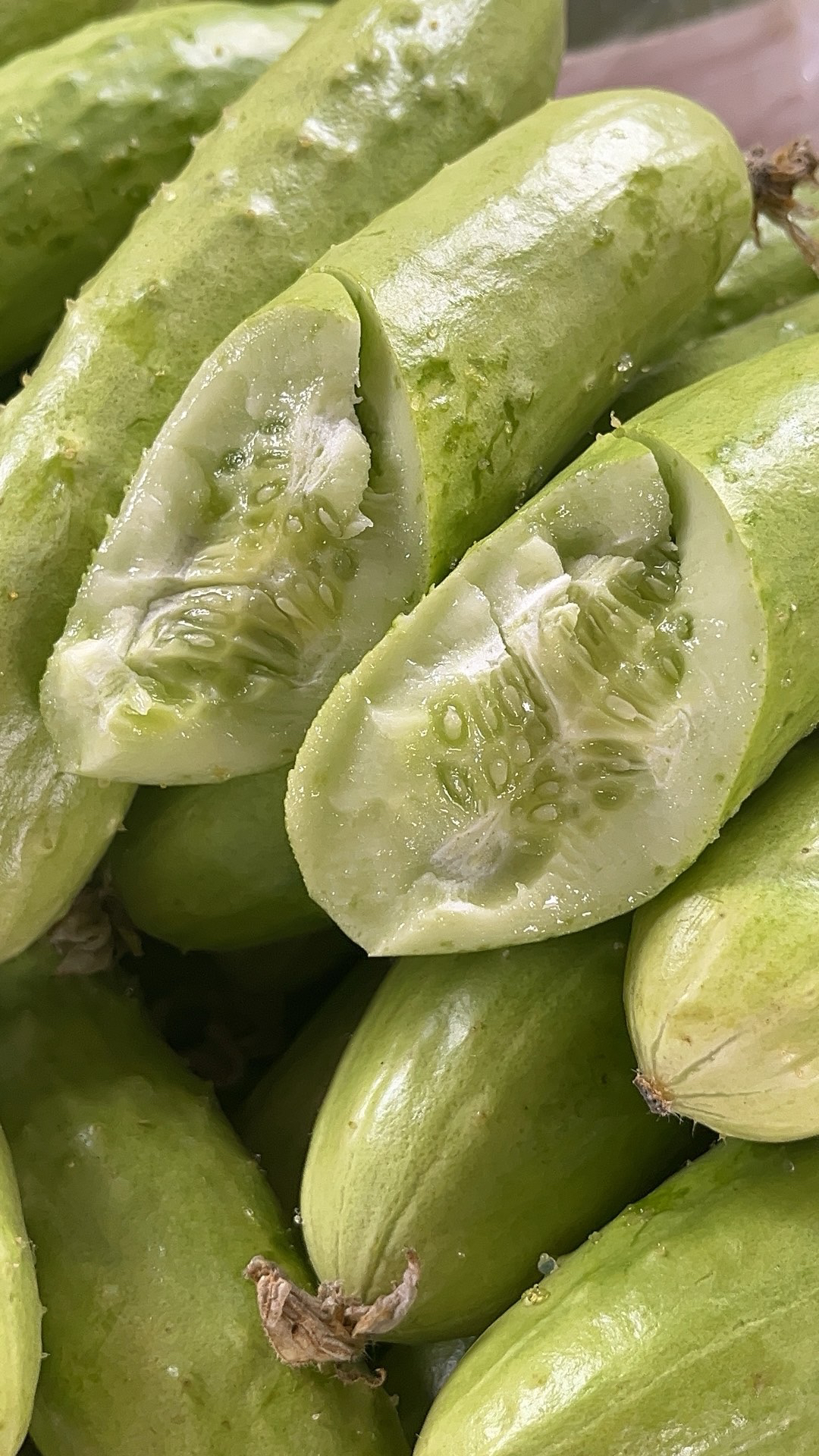【白玉黄瓜】口感甜鲜嫩脆,黄瓜味浓,表皮青白嫩绿,口感鲜甜,刺少,大小均匀,现摘现发 4.5斤/箱