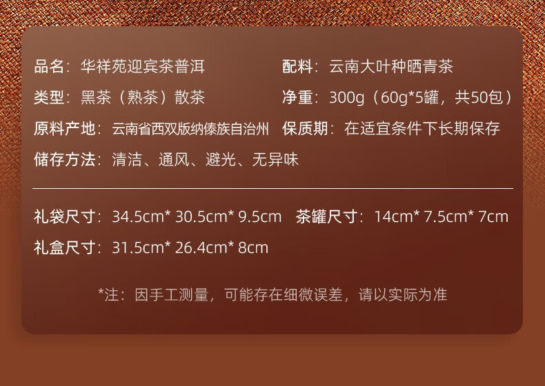 华祥苑普洱 迎宾茶普洱 云南勐海熟茶散茶300g