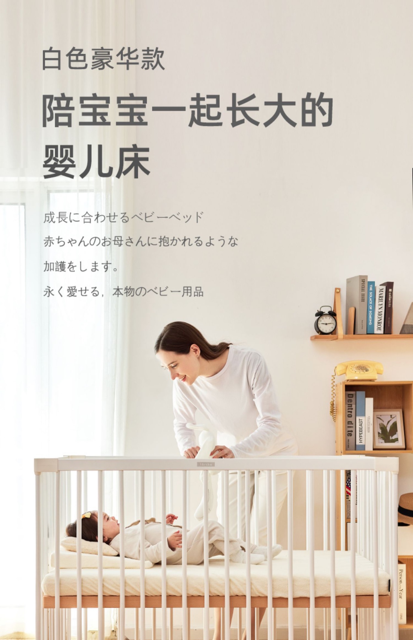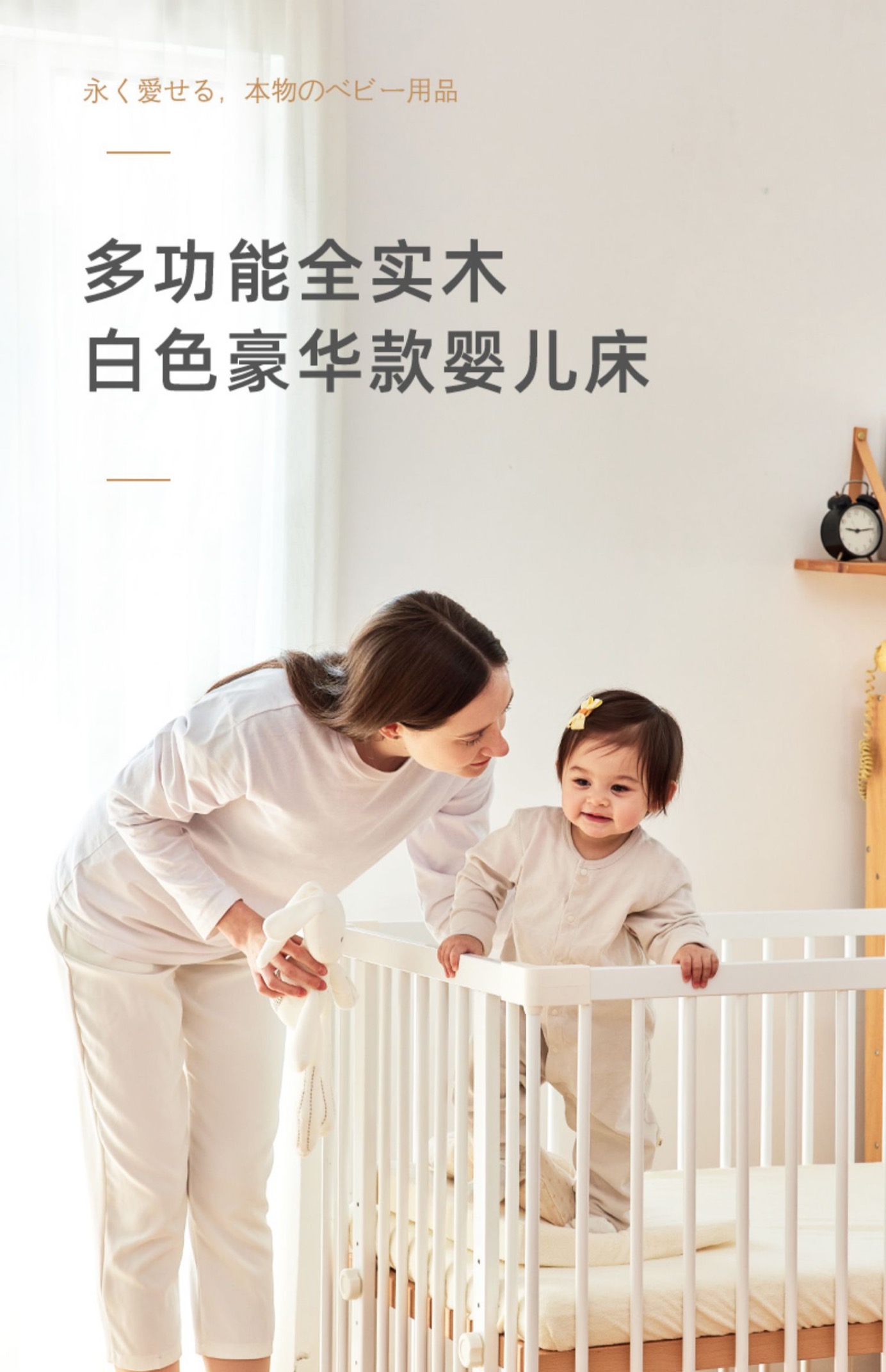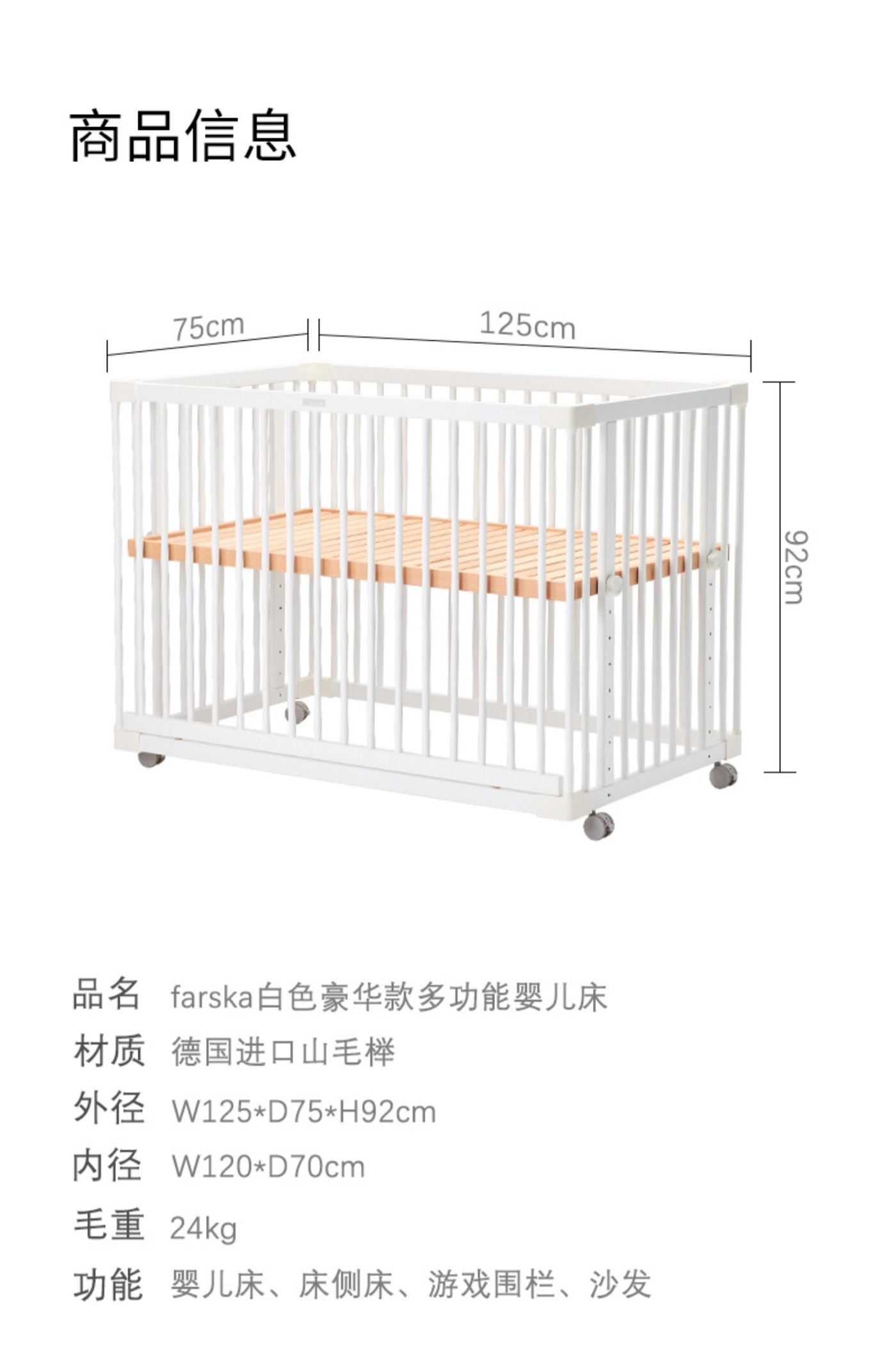 【品牌直供】日本farska豪华款(山毛榉白色) 婴儿床