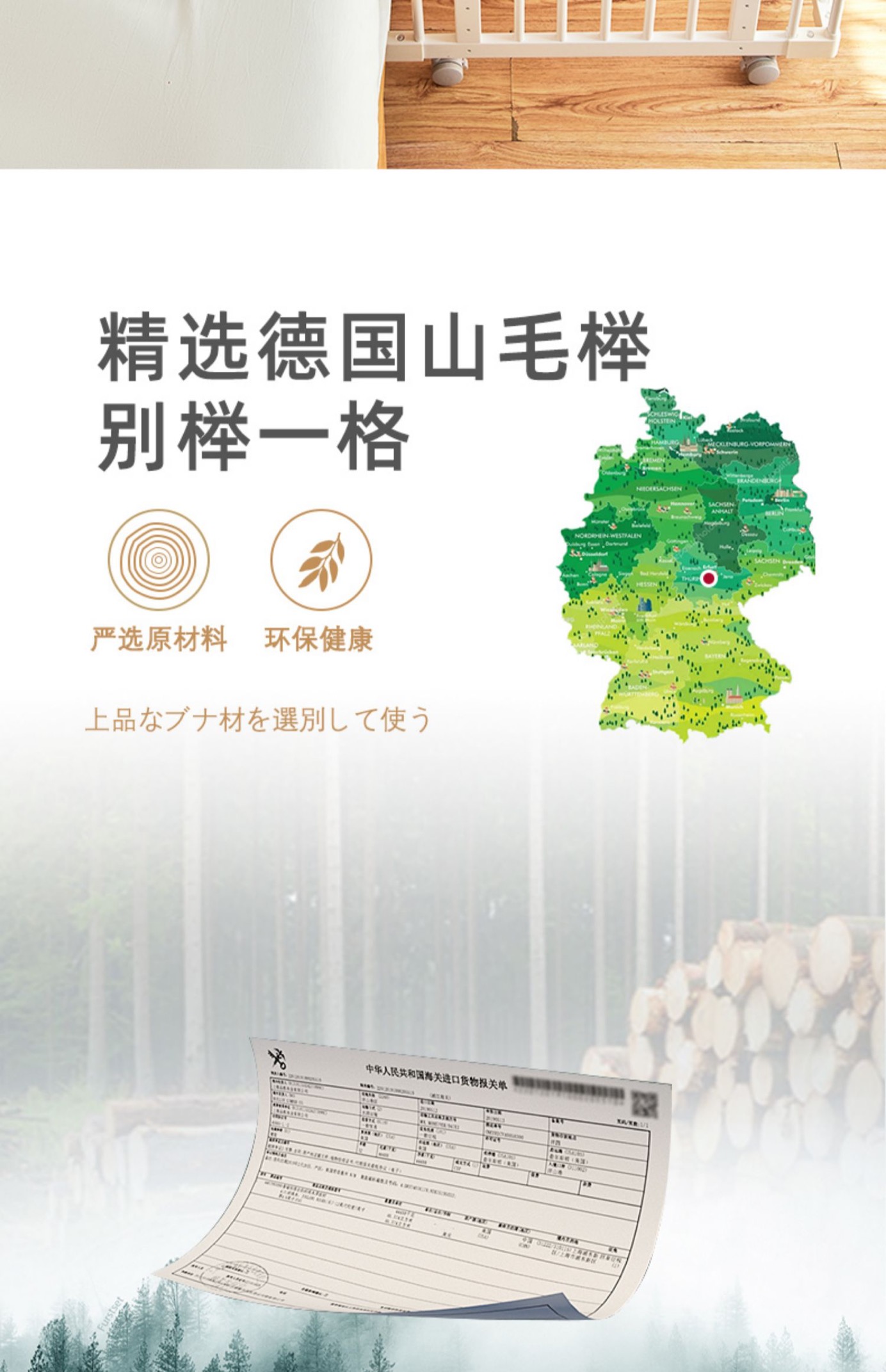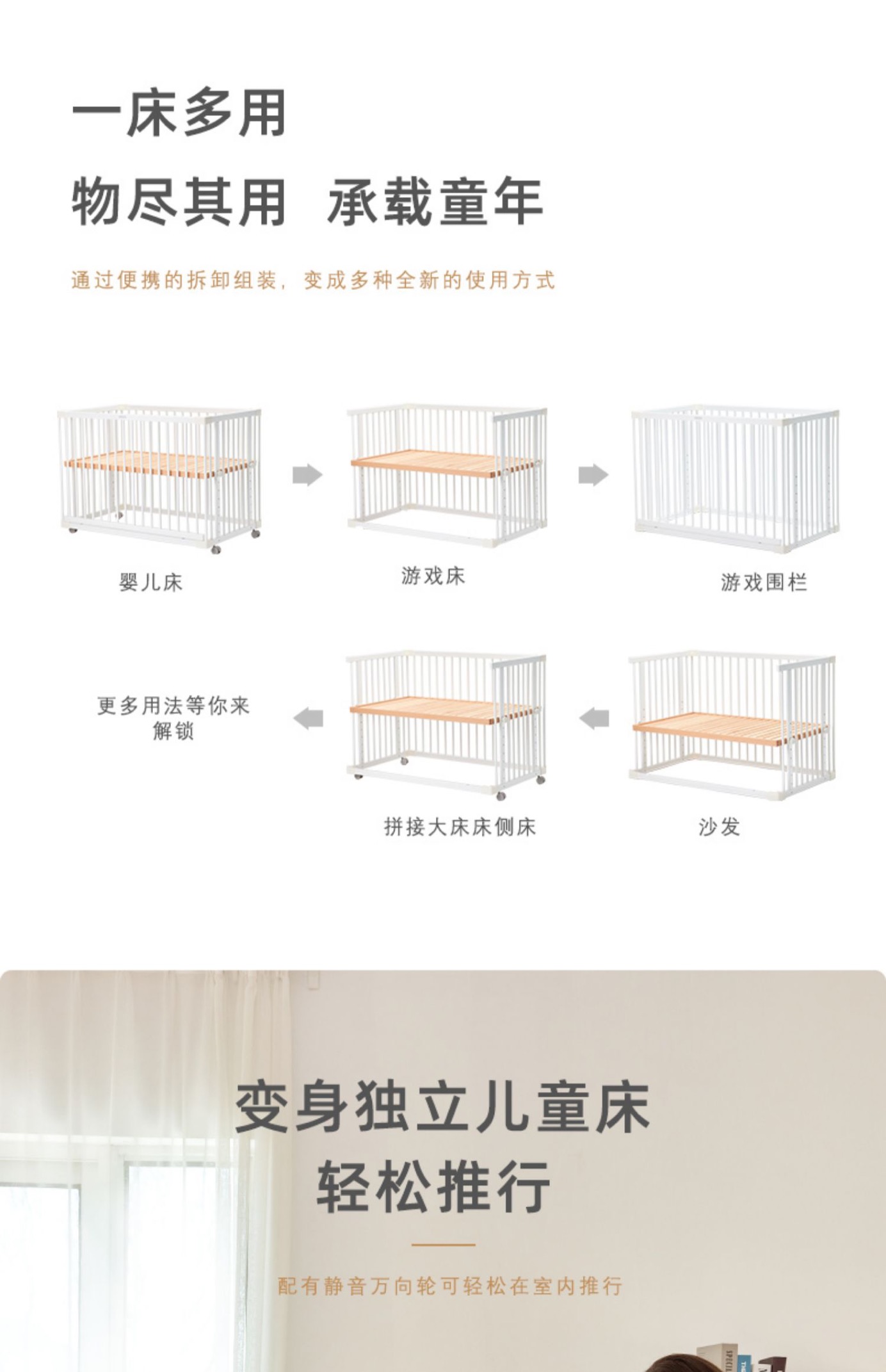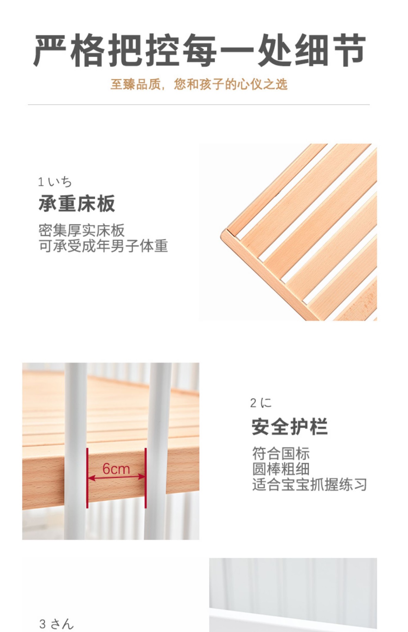 【品牌直供】日本farska豪华款(山毛榉白色) 婴儿床