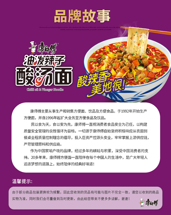 【亚欧超市】康师傅油泼辣子酸汤面87.5g*5