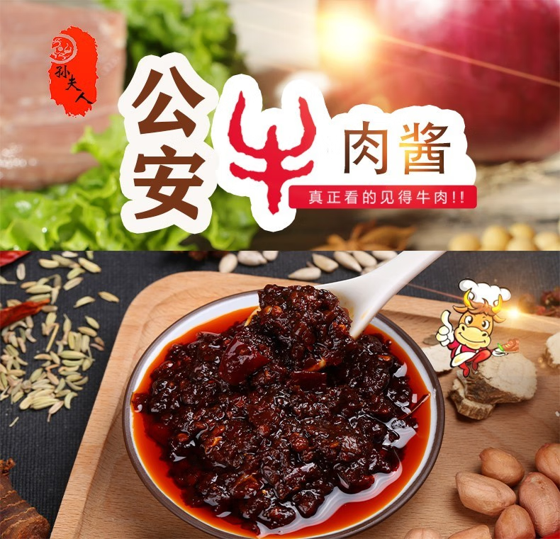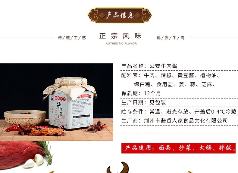 【严选】【手工制作】孙夫人手工牛肉酱湖北特产公安孙夫人手工酱下饭开 香辣味手工牛肉酱180g*2瓶/提