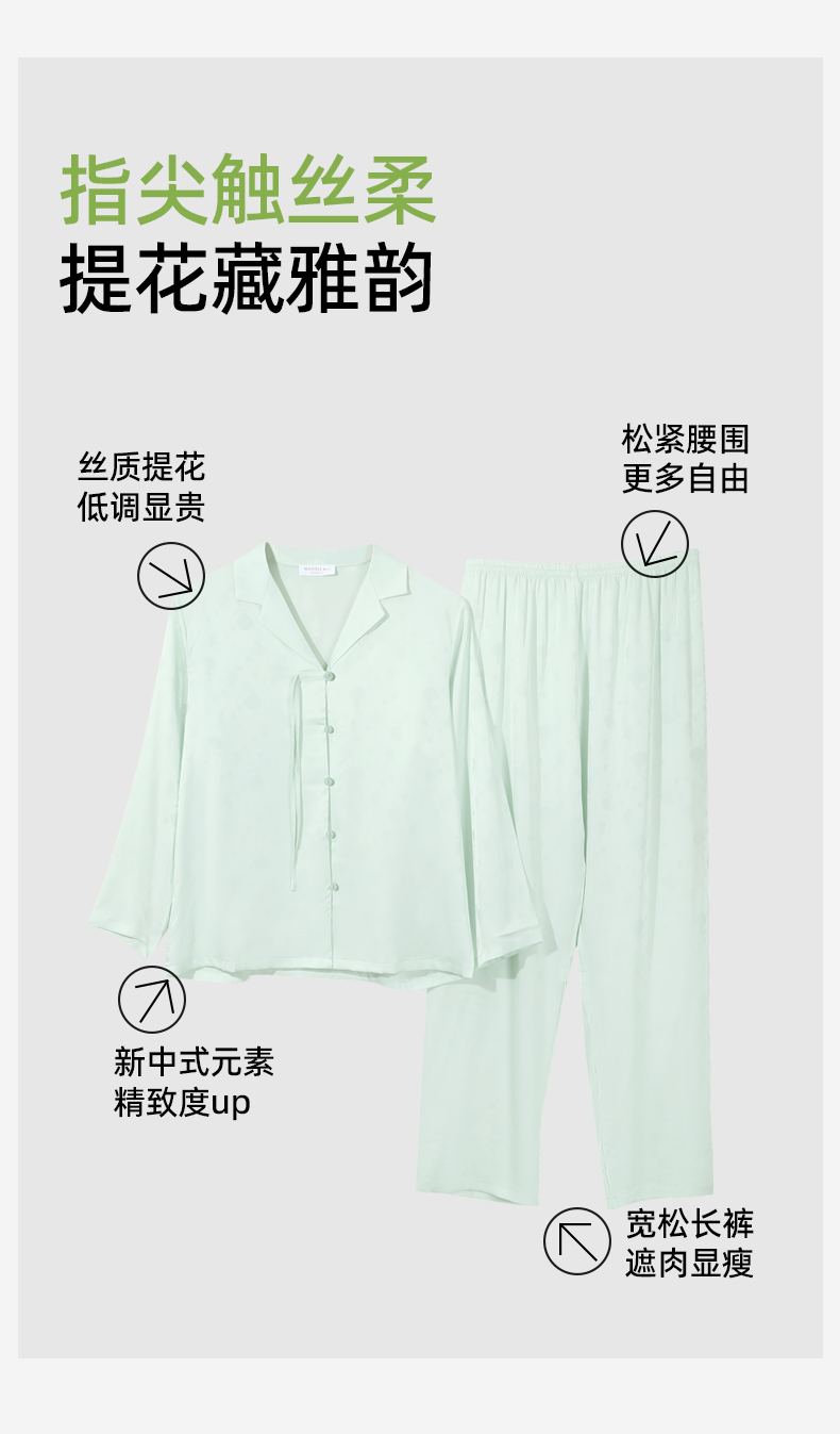 【商场同款】熳洁儿春季家居服开衫套装长袖长裤丝质缇花25703101