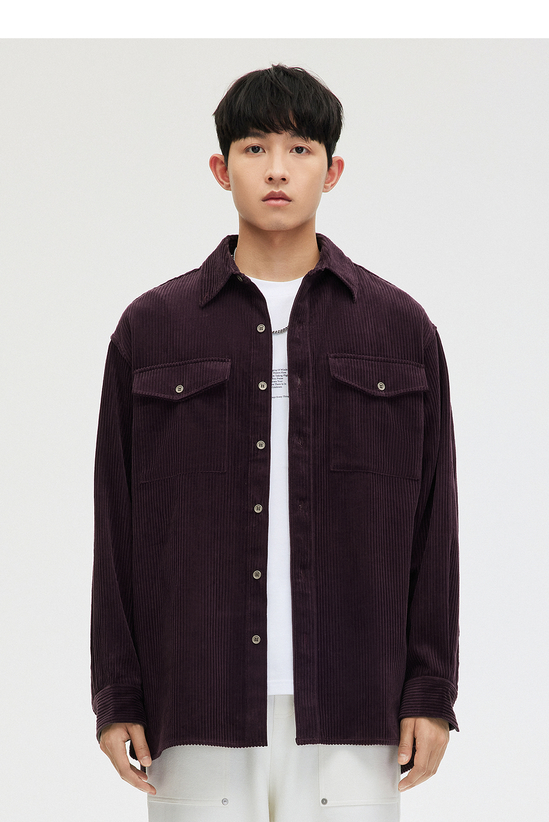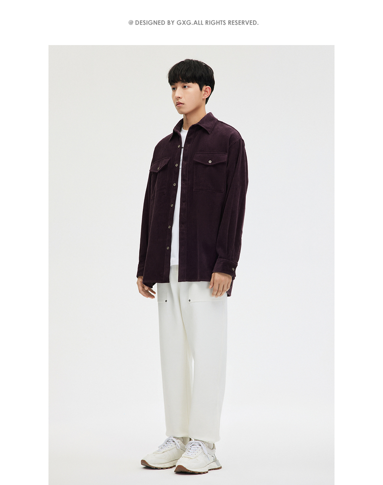 GXG男装 轻生活系列紫色灯芯绒衬衫外套 春季热卖