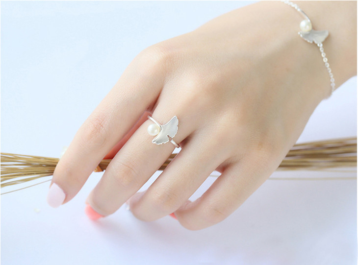 银杏叶食指开口戒指时尚饰品女日韩国甜美文艺创意银饰品