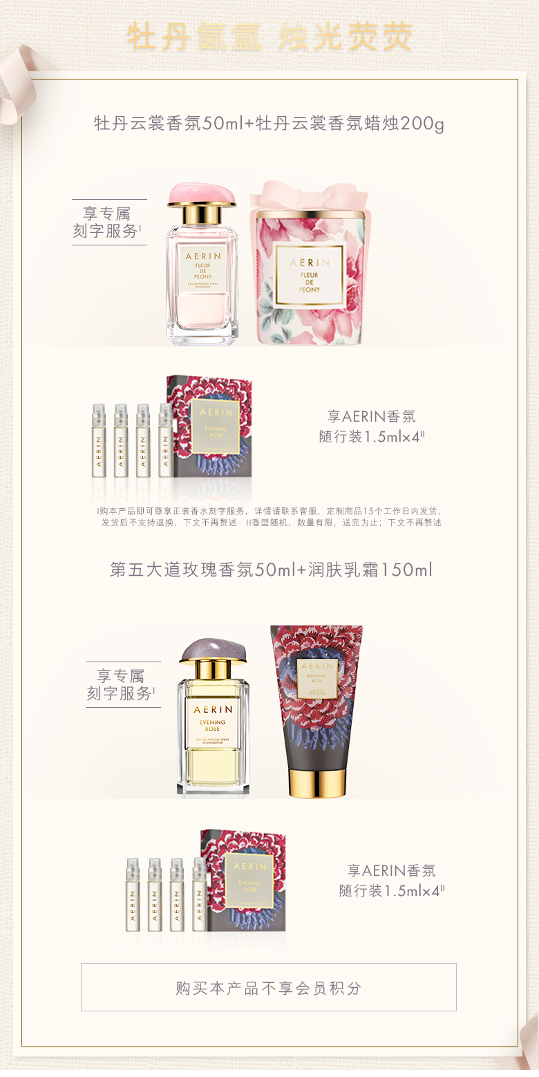 AERIN雅芮牡丹云裳香氛套组 香氛+香氛蜡烛/第五大道玫瑰香氛套组JPY带授权招加盟代理