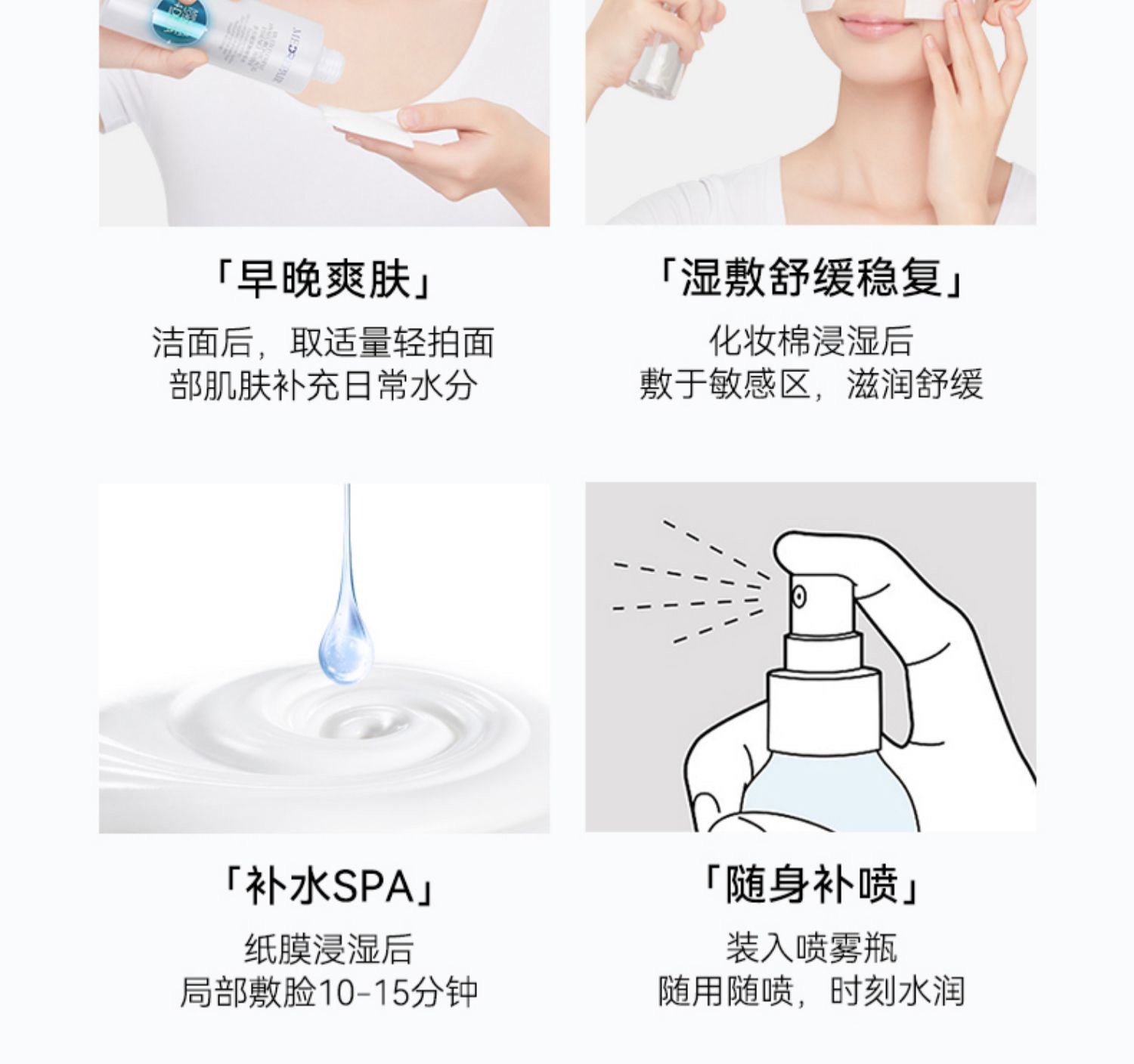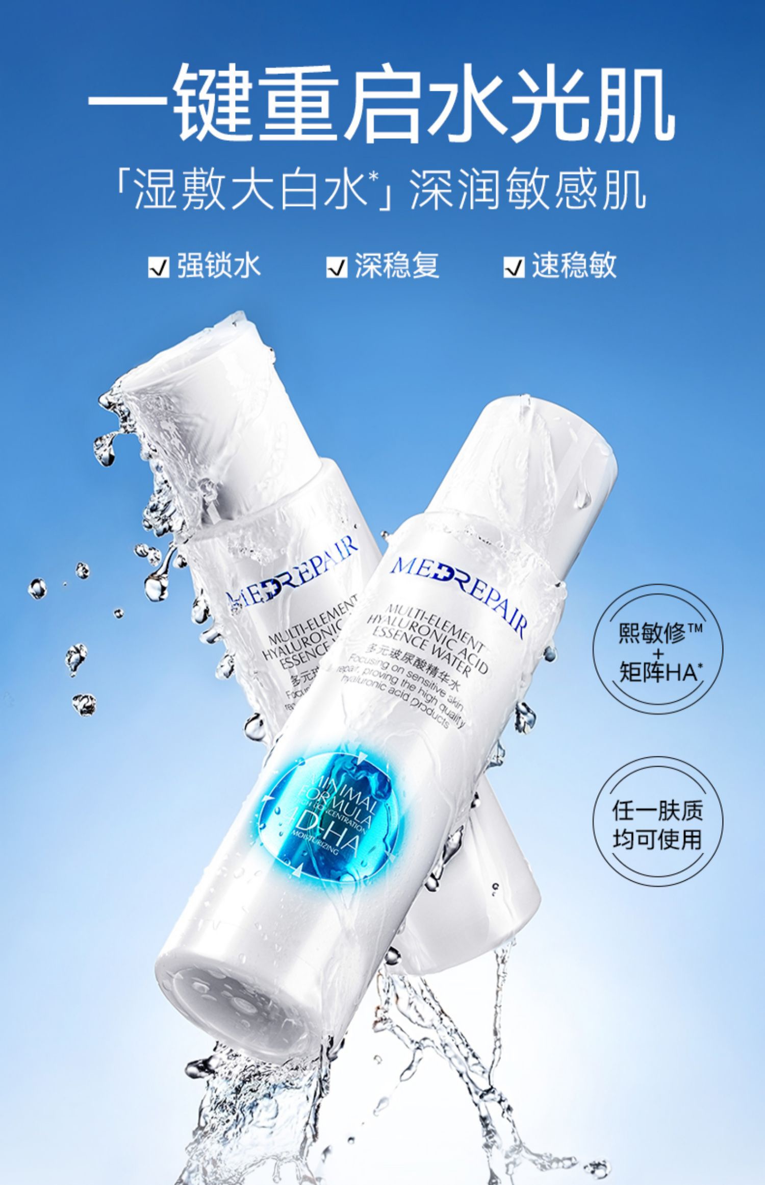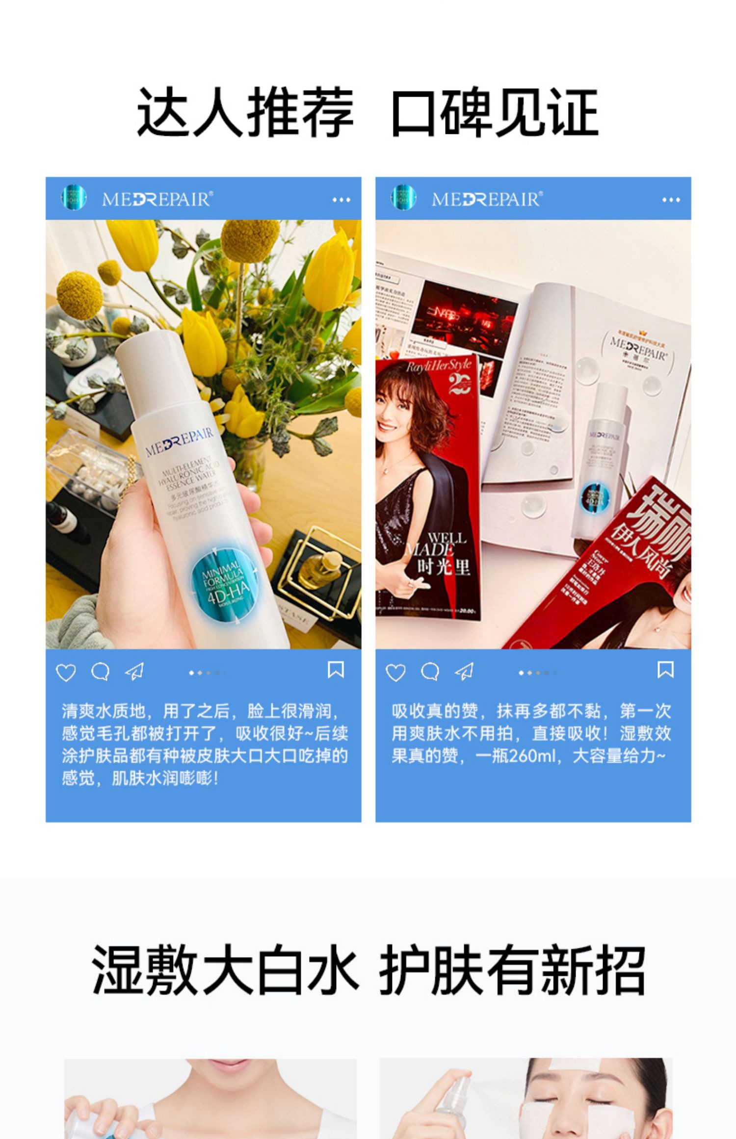米蓓尔湿敷多元玻尿酸精华水补水保湿爽肤水260ml,下单送泵头和化妆棉