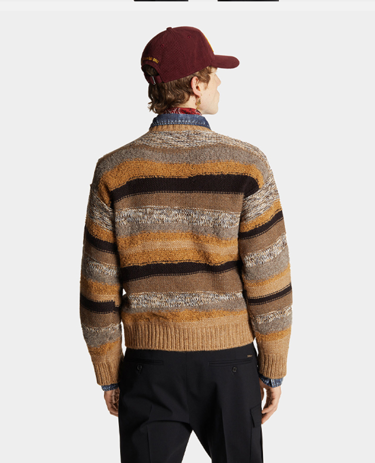 【一】DSQUARED2 男士条纹羊毛混纺圆领针织毛衣 混色 S74HA1465 D13048 961