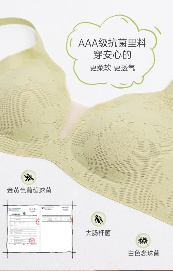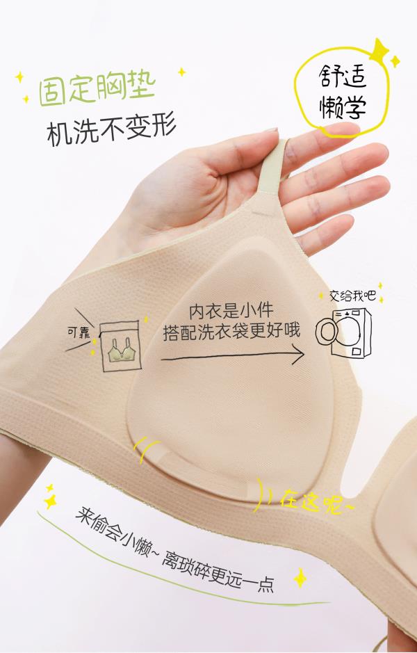 7mm透气胸垫,贴合胸部, 平和了舒适和聚拢,给身体自由的空间。
