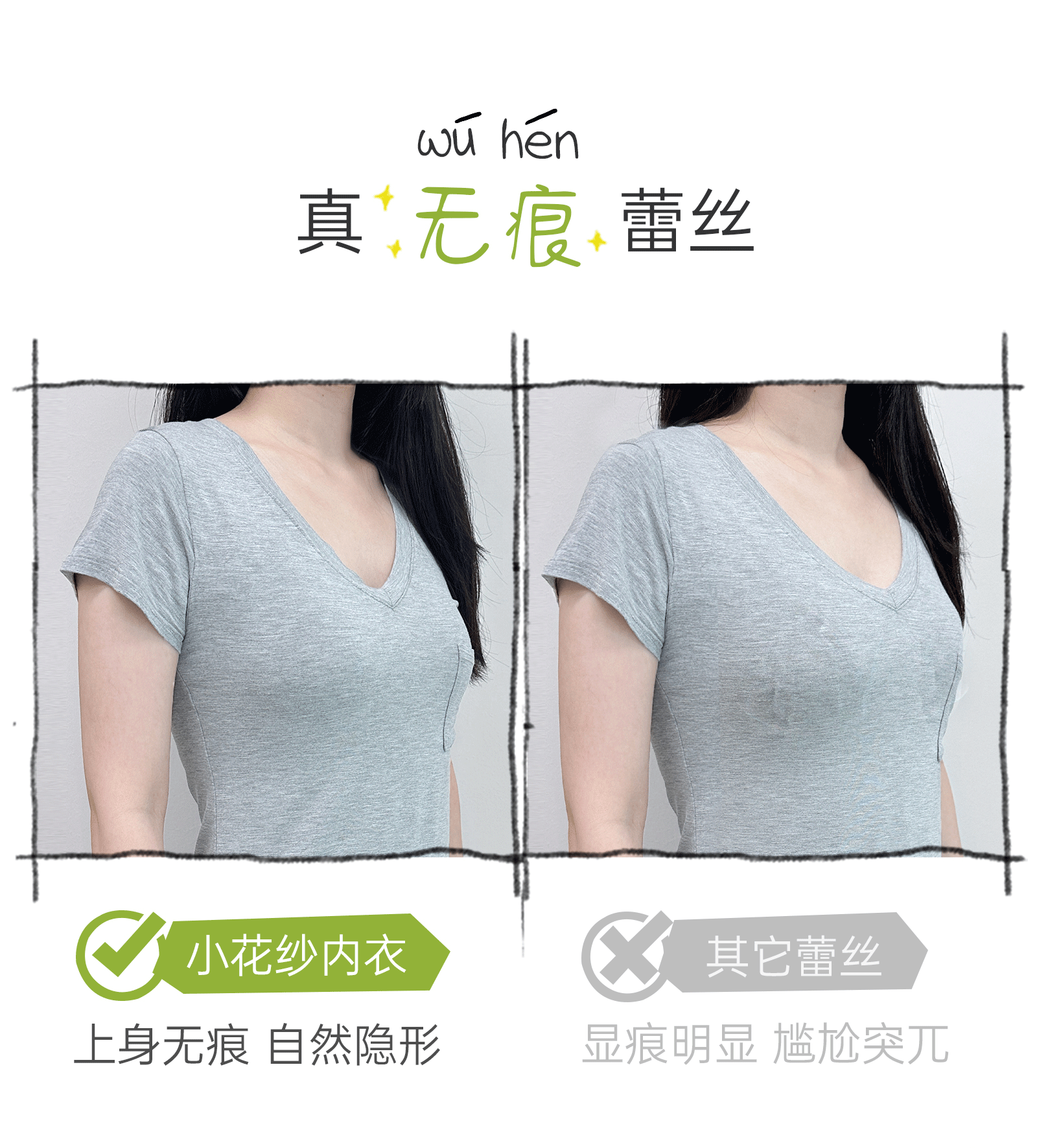 底围稳稳承托,加宽侧比, 把副乳多余的肉肉包裹起来,不外扩,防下垂, 让胸型显得更圆润自然。