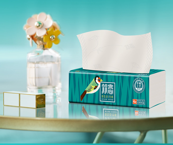 竹态象牙白压纹软抽抽纸4层80抽20包印花纸巾家用实惠装整箱大号