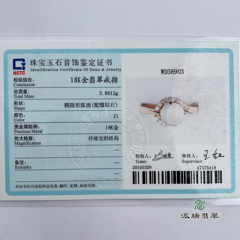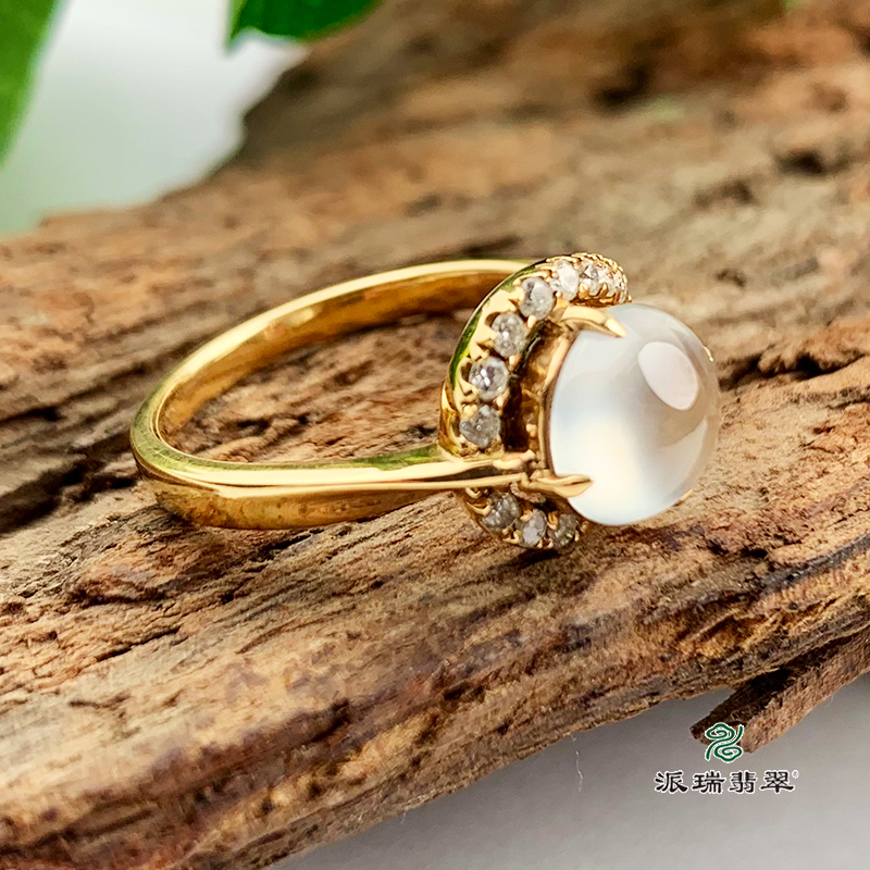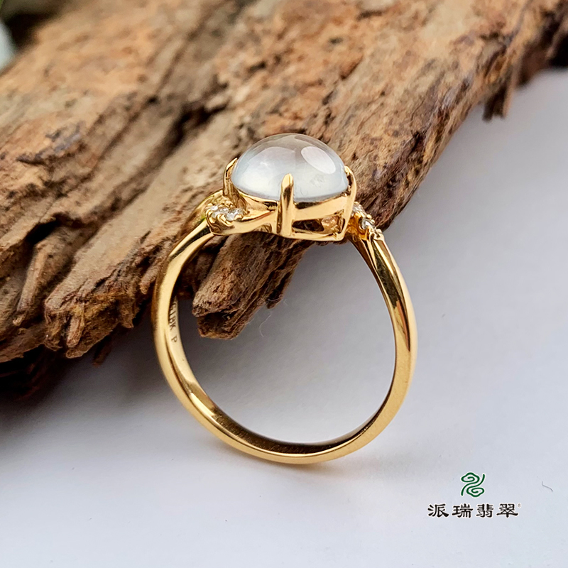 派瑞翡翠 18k金翡翠戒指 冰种 无色