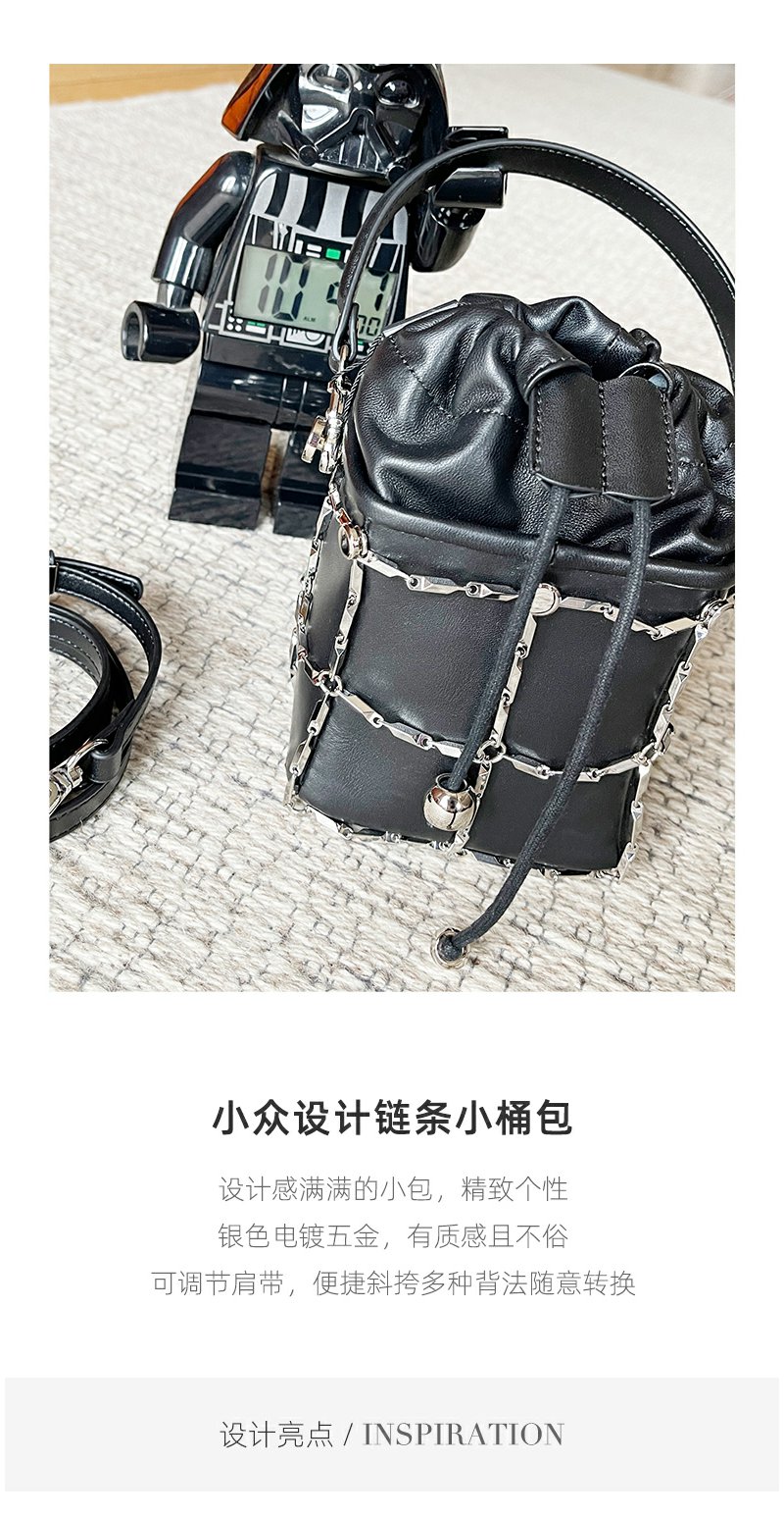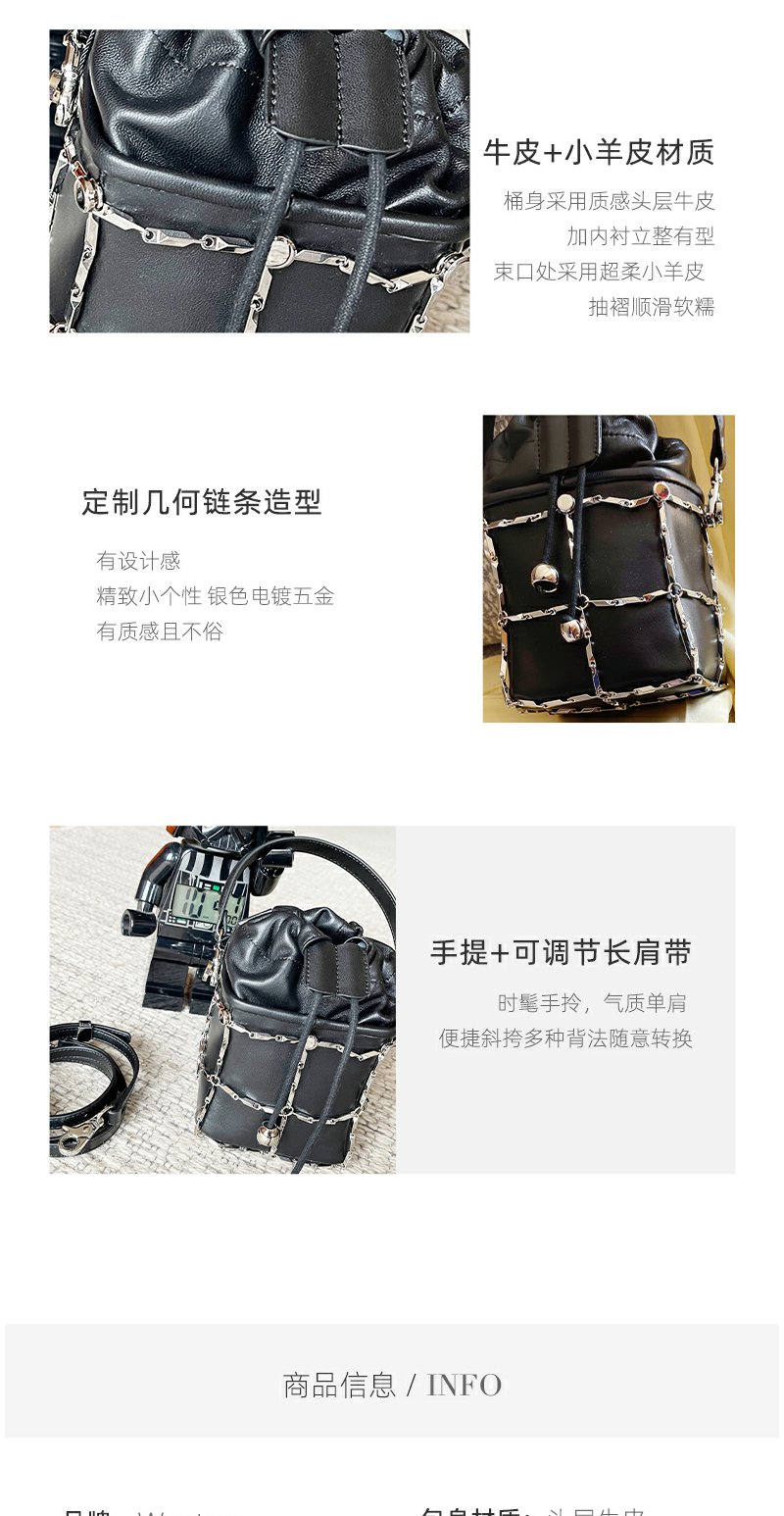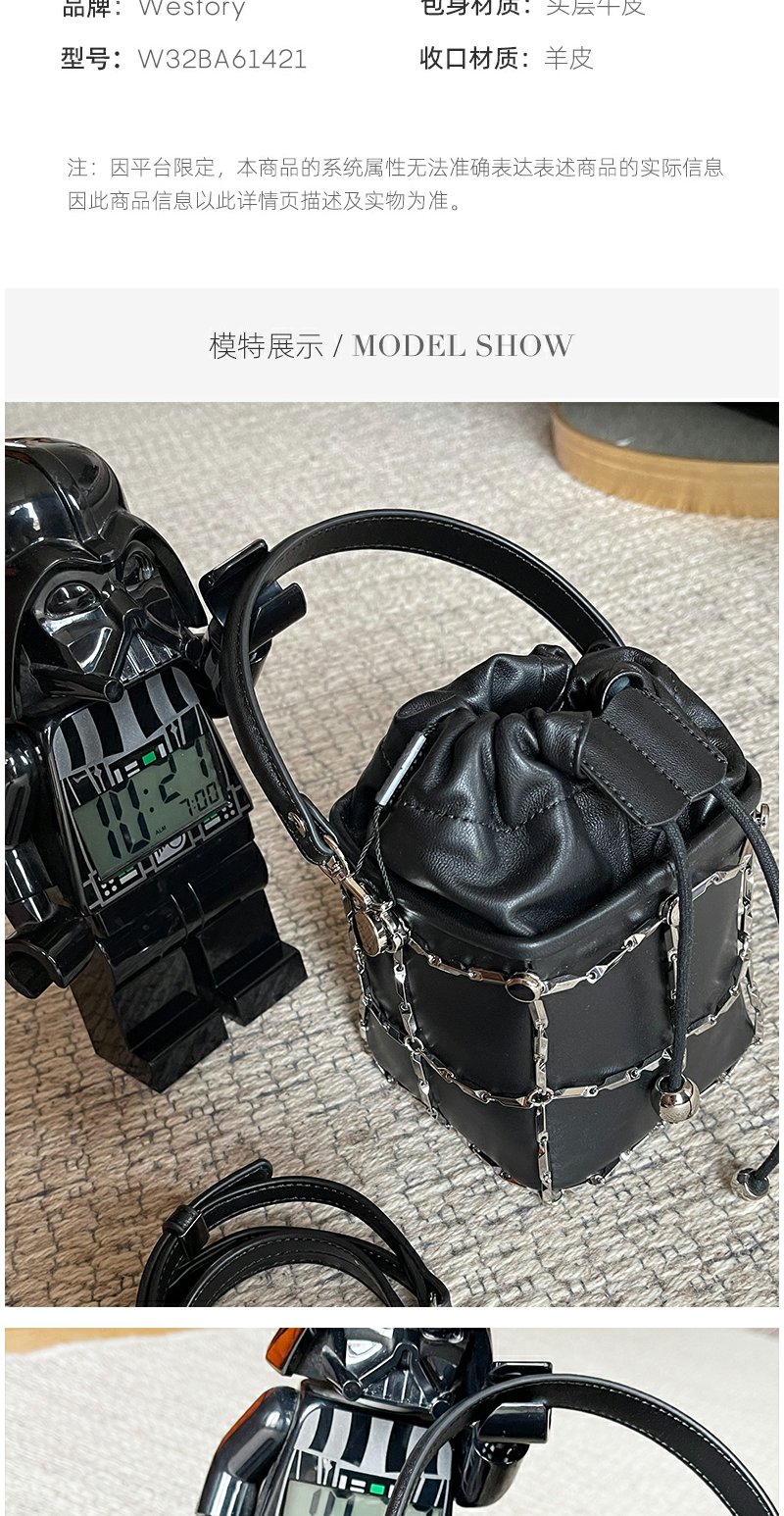 westory2022新款单肩斜挎黑色气质水桶立体包W32BA6142101W