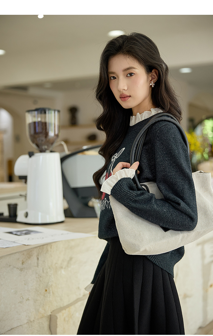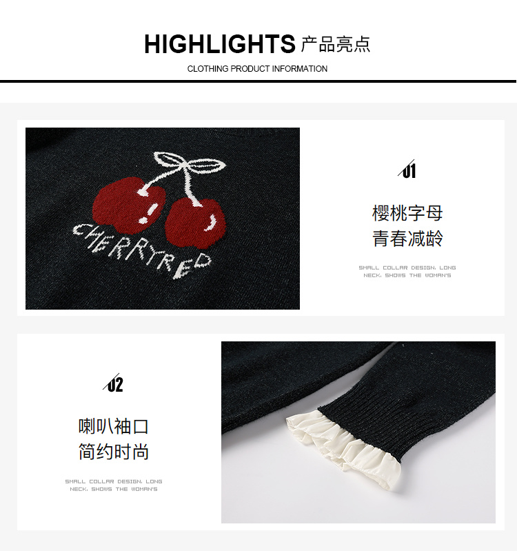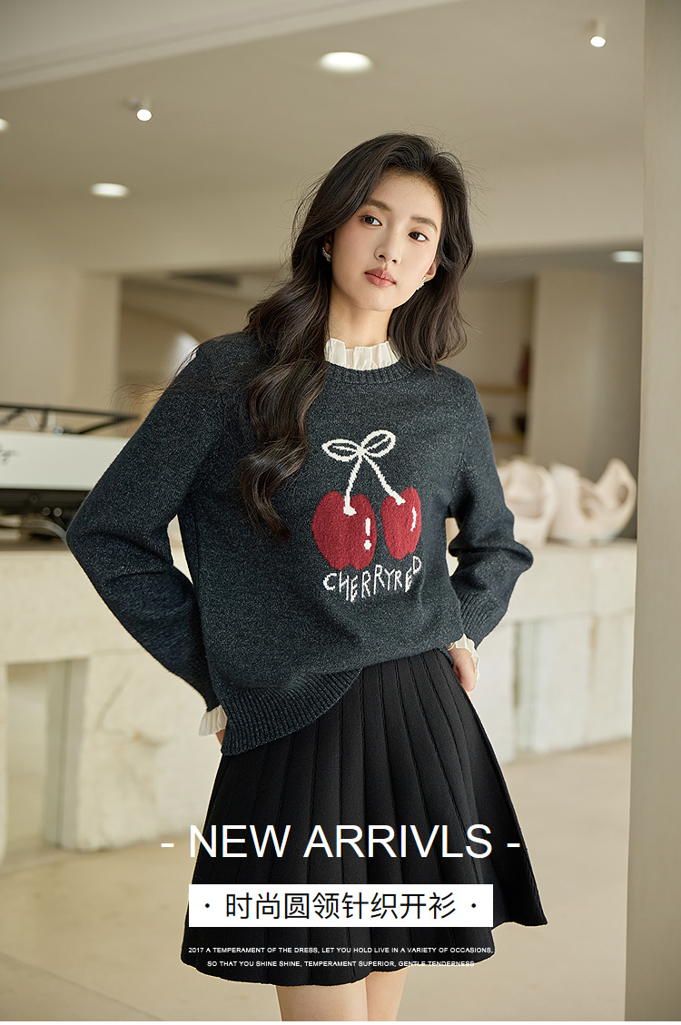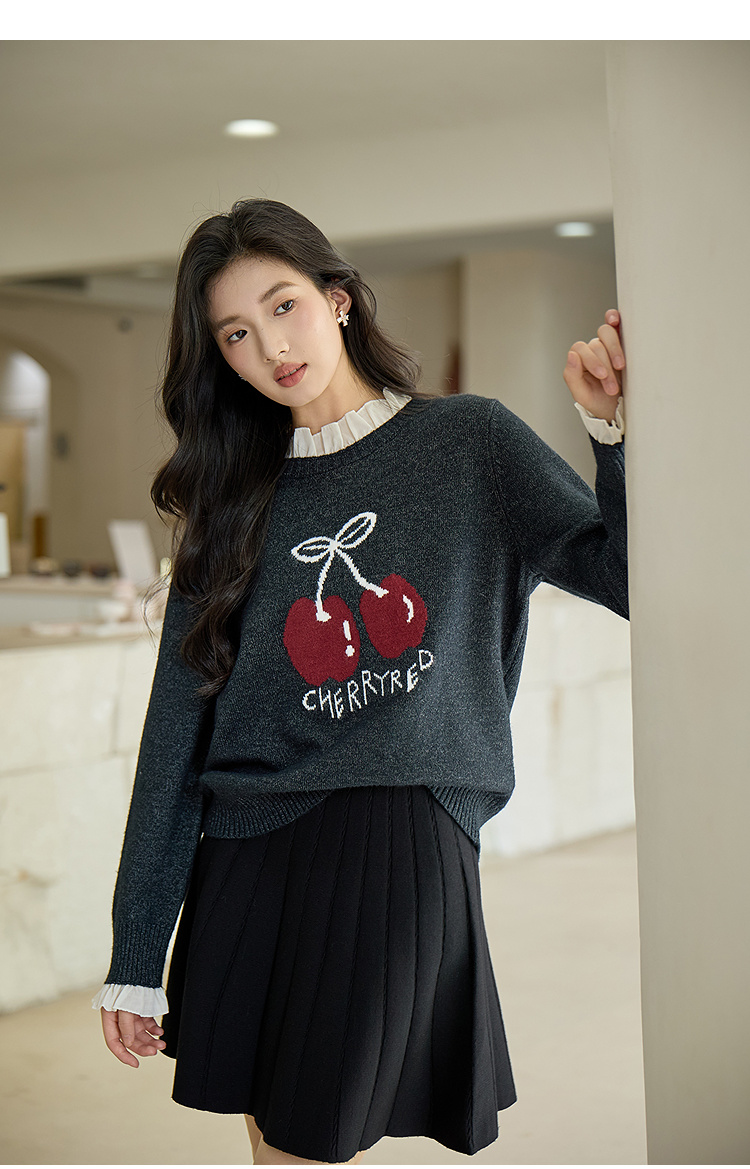 奢姿大码女装2025秋季胖妹妹时尚减龄樱桃图案气质花边装饰针织衫9653653643