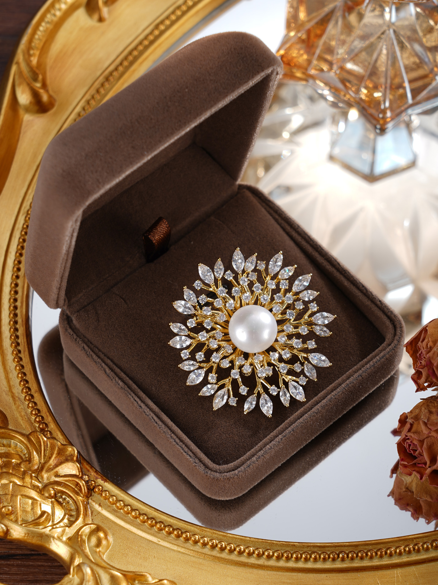 子佩集【浮光咏序】珍珠惜王妃胸针【XXXZ237】11mm珠镀金雪花2601