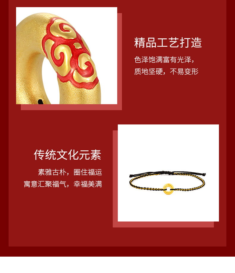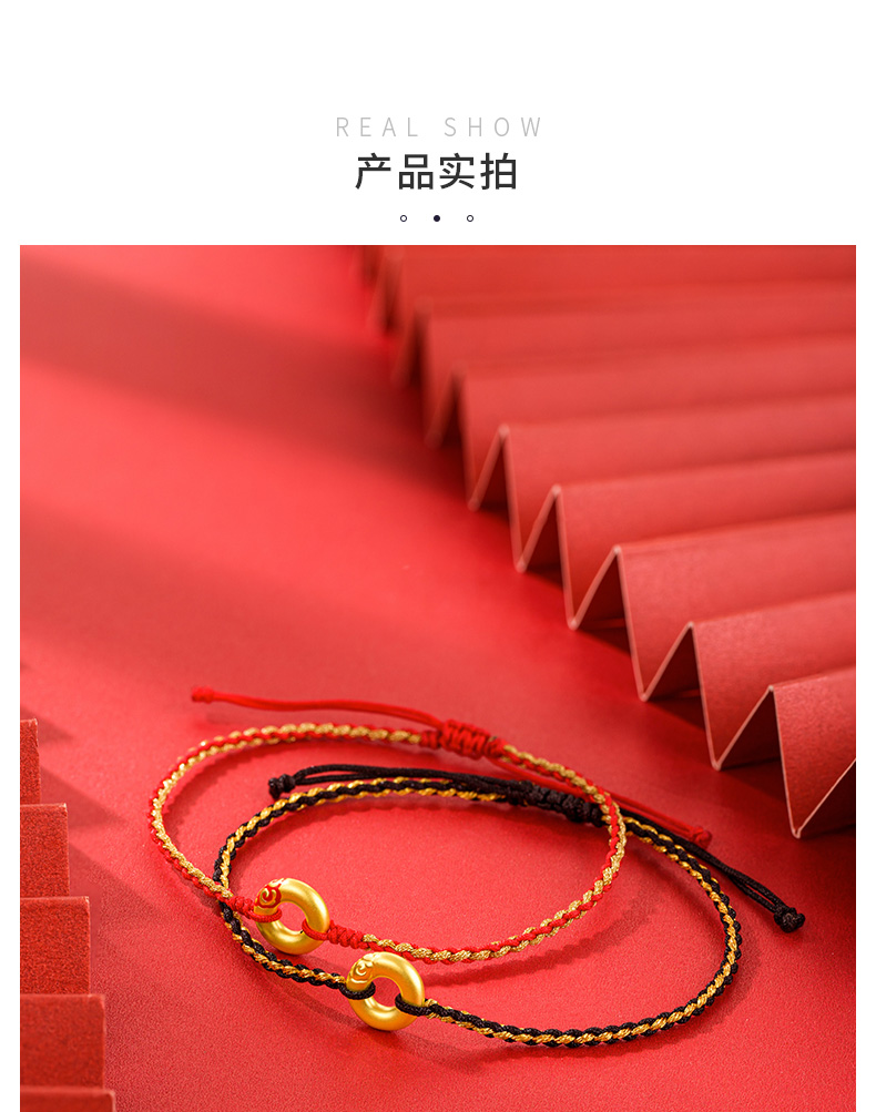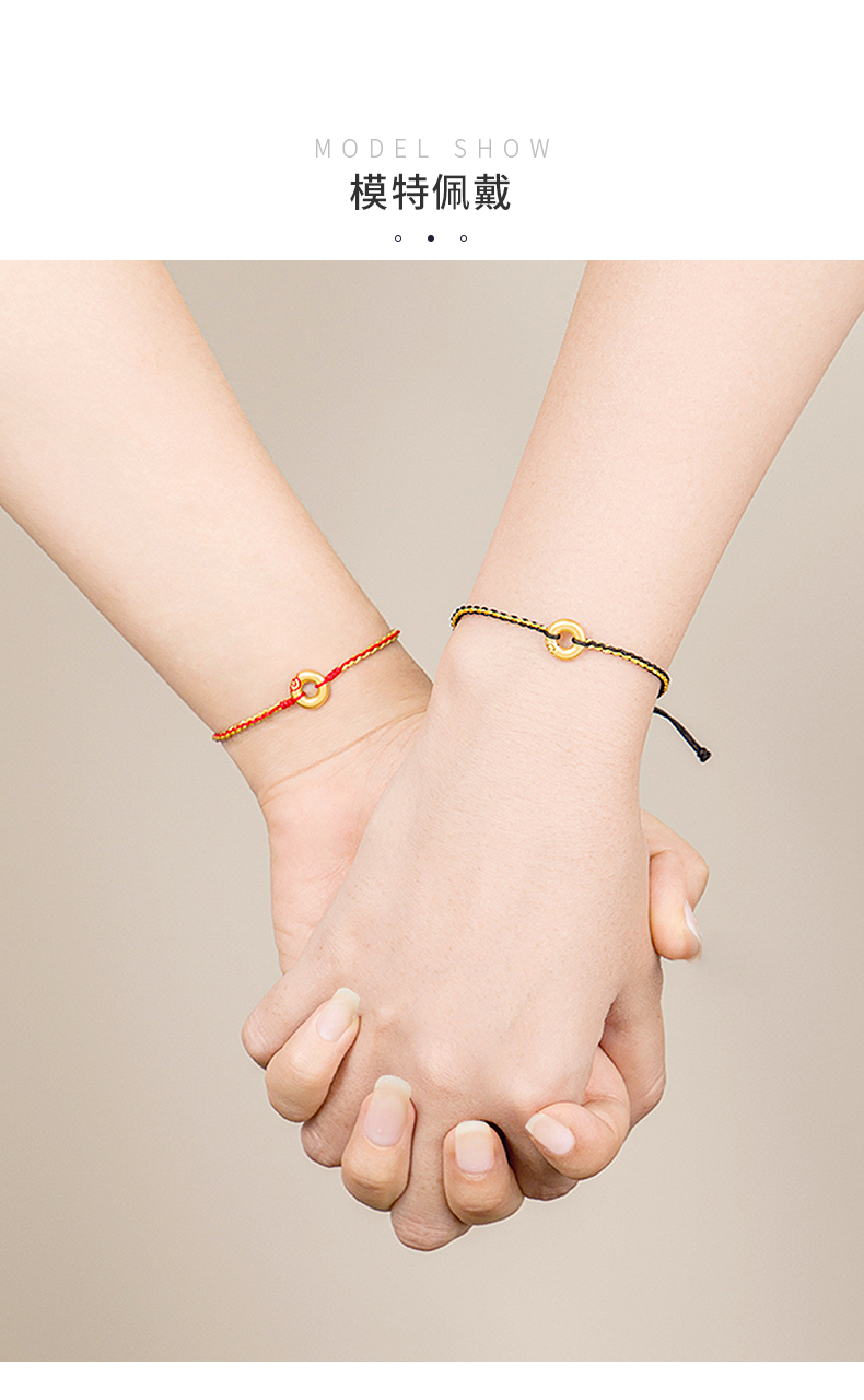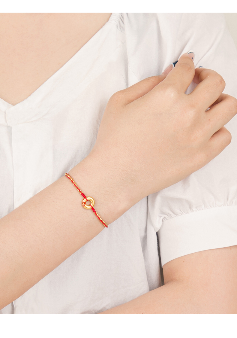 【生日会员】黄金平安扣手链 男女情侣款3D硬金转运珠平安扣红绳黄金手链礼物MEMORA诗普琳HBE06901、HBE06902(线上专供)