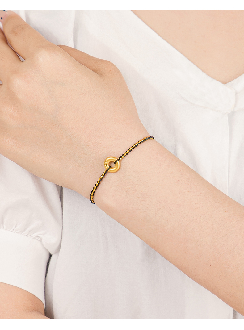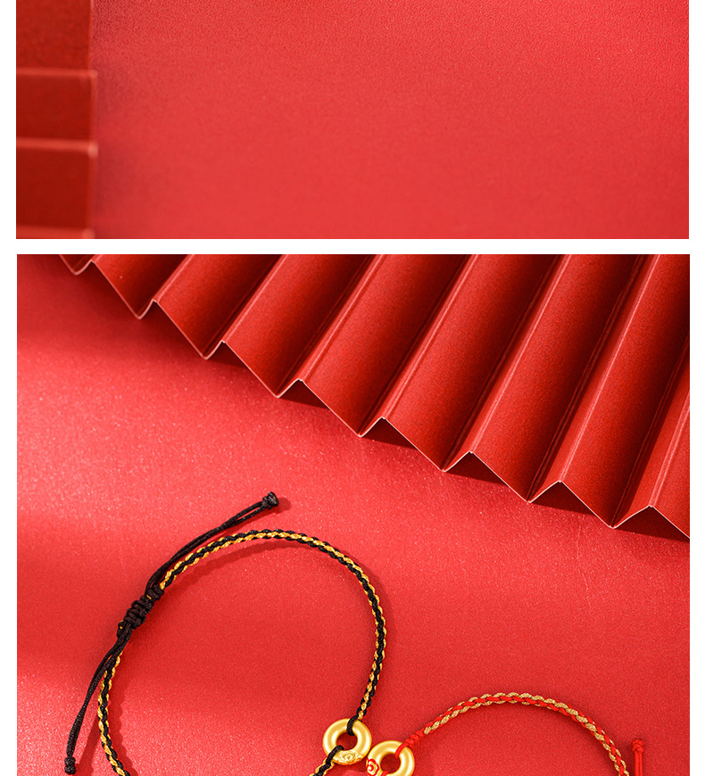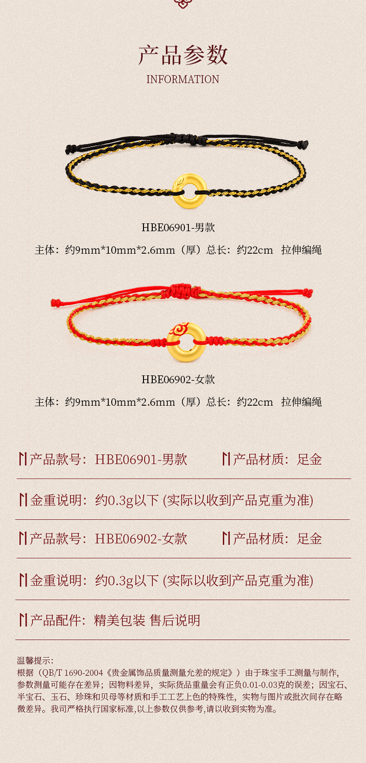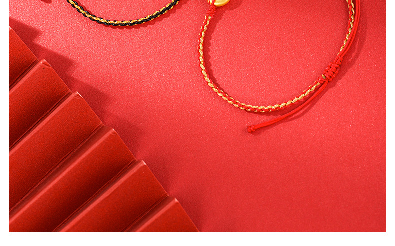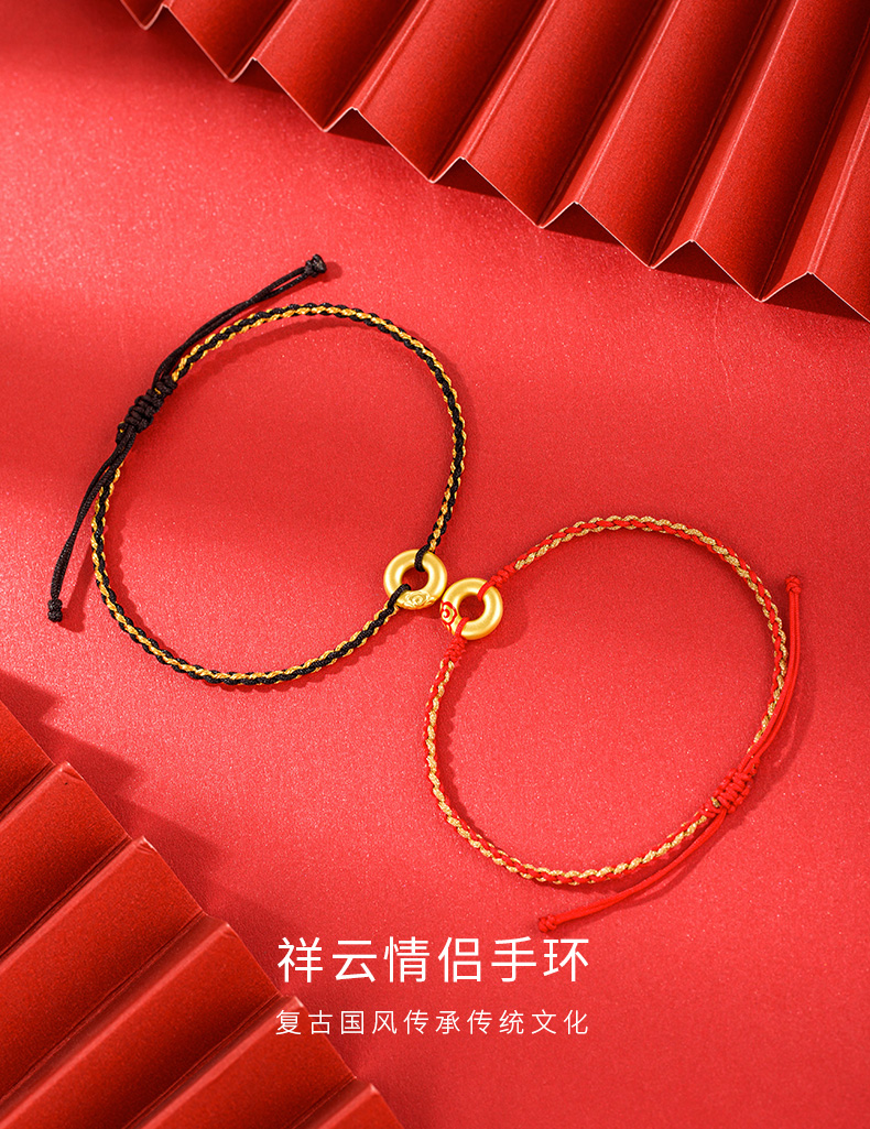 【生日会员】黄金平安扣手链 男女情侣款3D硬金转运珠平安扣红绳黄金手链礼物MEMORA诗普琳HBE06901、HBE06902(线上专供)